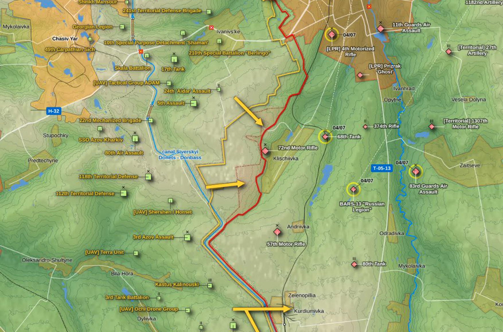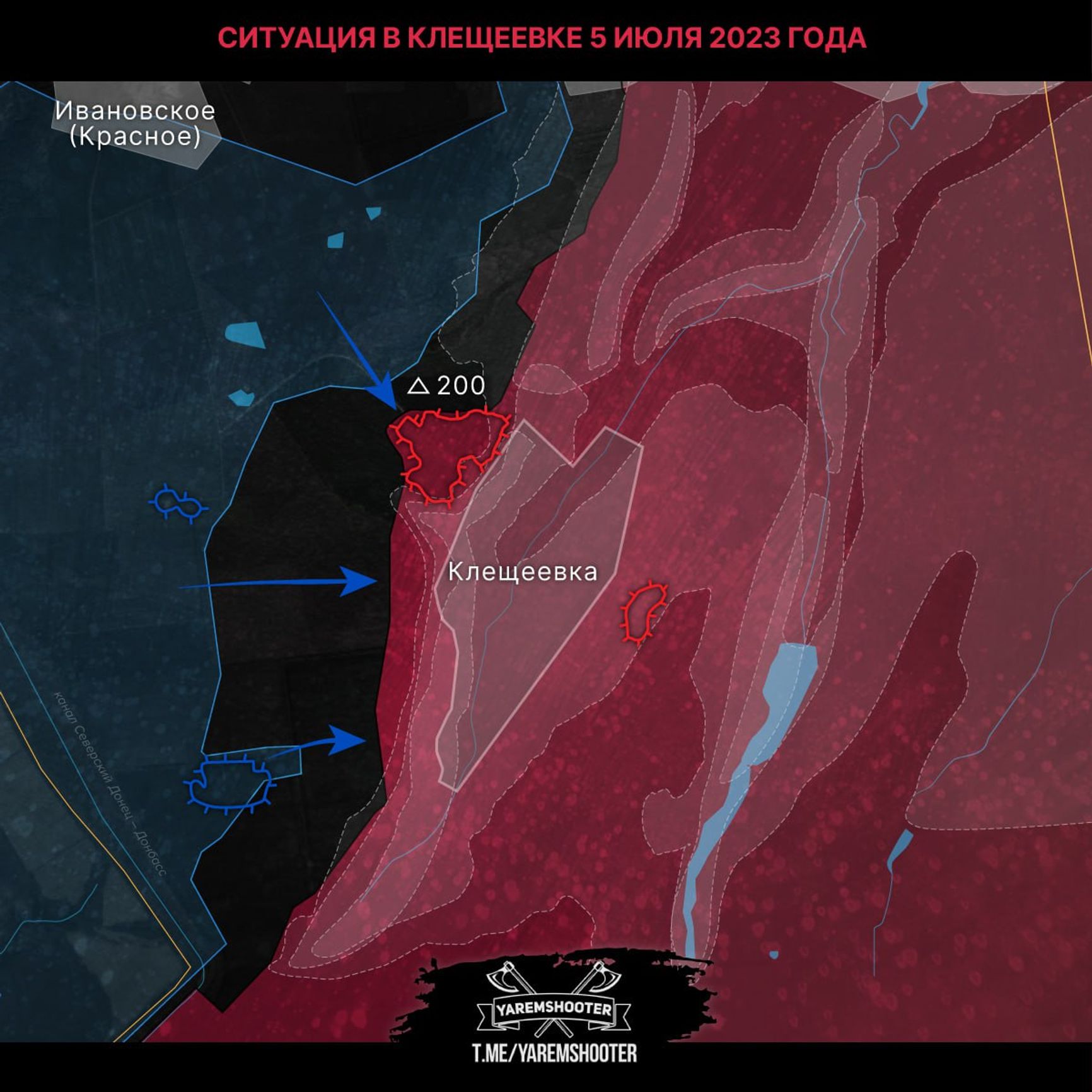 Игорь Гиркин со ссылкой на источники «с места» сообщает о том, что Клещеевка находится под контролем российских военных, однако ВСУ захватили «важную высоту». Поскольку другой важной высоты перед населенным пунктом нет, можно предположить, что украинцы взяли именно ту, о которой рассказал Яремчук.