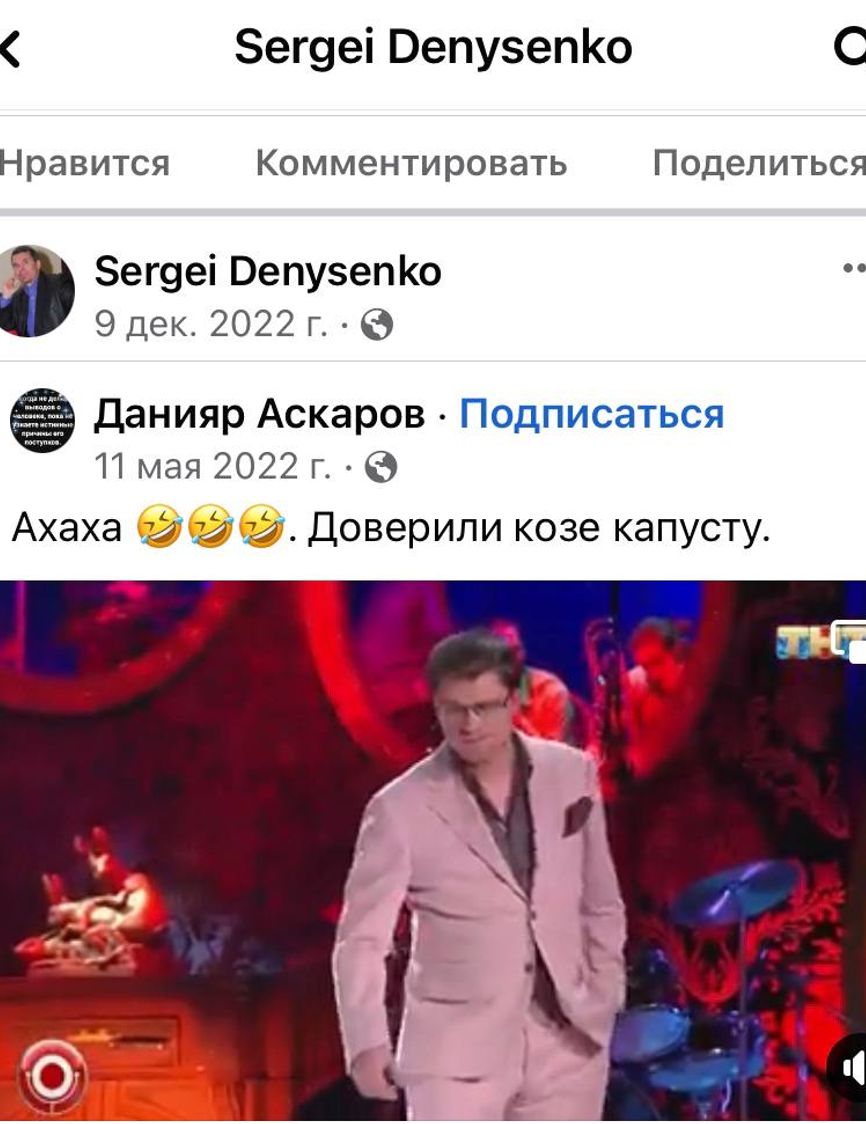 На странице Сергея Денисенко в Facebook есть посты с программами российского телевидения. Публикации датированы декабрем 2022 года, то есть посты были сделаны уже после начала полномасштабного российского вторжения в Украину.