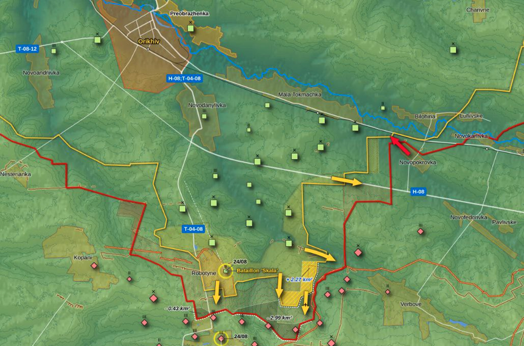 ВСУ удается продвигаться как минимум на двух направлениях — к югу от Орехова и Великой Новоселки и, учитывая нехватку оперативных резервов, а также сомнения в способности российских войск организовать устойчивую оборону на второй линии фортификационных сооружений, даже незначительный на первый взгляд прорыв в дальнейшем имеет все шансы обернуться крупным успехом.