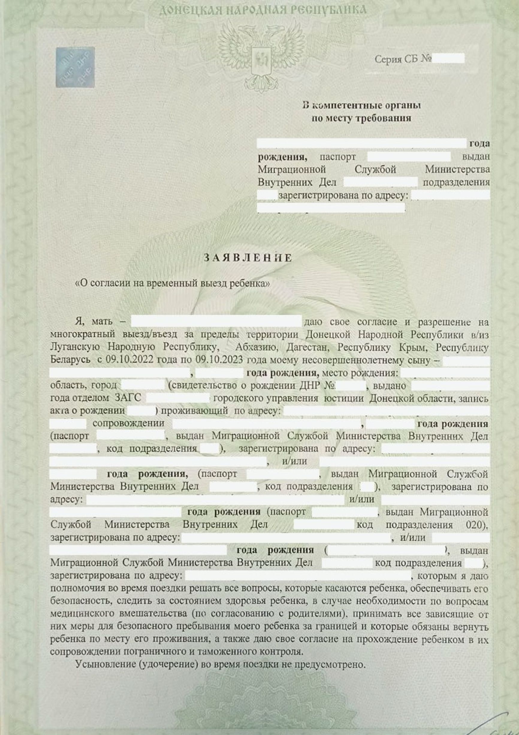 Также «Киберпартизаны» опубликовали бланк с гербами и печатью «Донецкой народной республики» согласия якобы родителя на «многократный выезд/въезд» своего ребенка «в/из ЛНР, Абхазию, Дагестан, Республику Крым, Республику Беларусь». Таким образом, сотрудники белорусского Красного Креста планируют объяснять, как несовершеннолетние украинские дети без родителей оказались в Беларуси, пишут «Киберпартизаны».