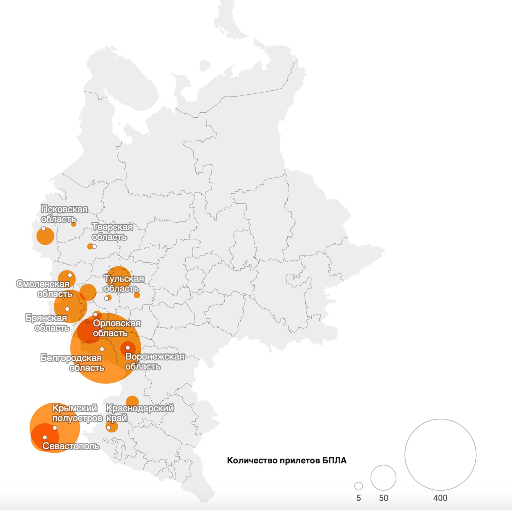 Telegram-канал «Говорит НеМосква» подсчитал, что за четыре месяца на территорию РФ было совершено 500 атак с помощью дронов. Согласно этим данным, налеты происходят практически ежедневно. В среднем в сутки «прилетает» по четыре дрона. Всего речь идет о почти тысяче беспилотников.