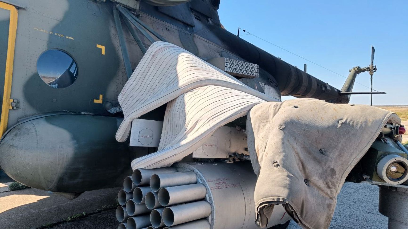 - Российские военные обкладывают боевые вертолеты матрасами, вероятно, с целью защитить их от БПЛА.