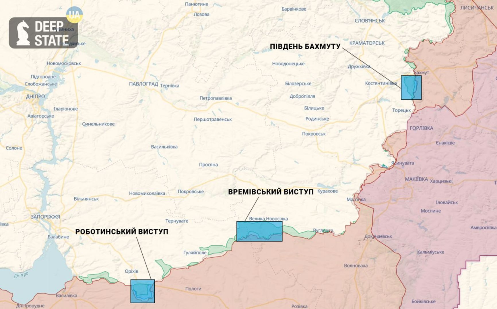 DeepState отмечает, что за последние четыре месяца ВСУ удалось освободить Андреевку и Клещеевку к югу от Бахмута.