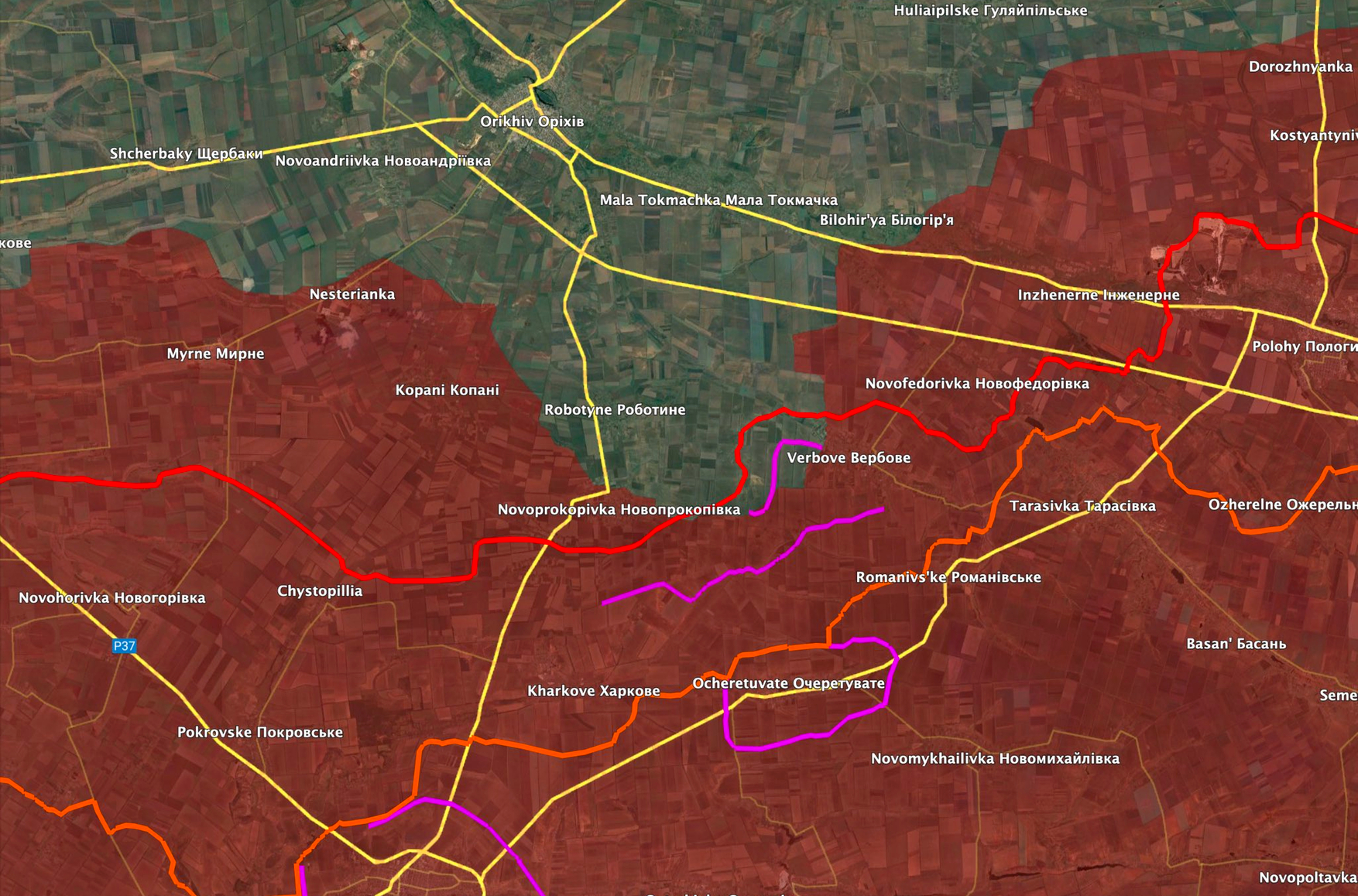 «Продвижение дает ВСУ возможность охватить Вербовое, играющее важную роль. В самом треугольнике Новопрокоповка — Вербовое — Очеретоватое не просто так сформированы основные боевые действия. Новопрокоповка — это ключ к трассе 0408 на Токмак, Очеретоватое — ключ к трассе 0401 тоже на Токмак, а Вербовое, в районе которого и был прорван второй рубеж по второй линии обороны, — это интересное село, которое одновременно позволяет выйти на 0401 в обход Очеретоватого, а также позволяет выйти на трассы 0804 и 0815, которые ведут напрямую на Пологи, что может позволить окружить довольно-таки серьезную группировку российских оккупационных войск и через Пологи выйти на Бердянск».
