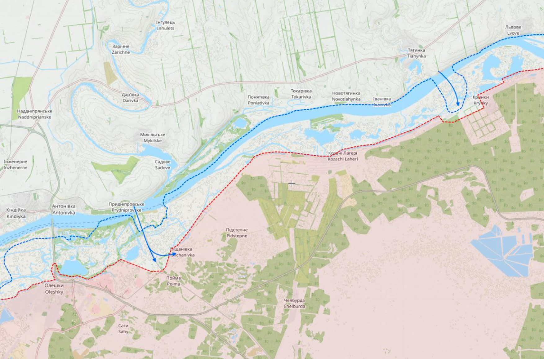 - Украинский десант высадился на левом берегу Днепра и закрепился в селе Крынки;
