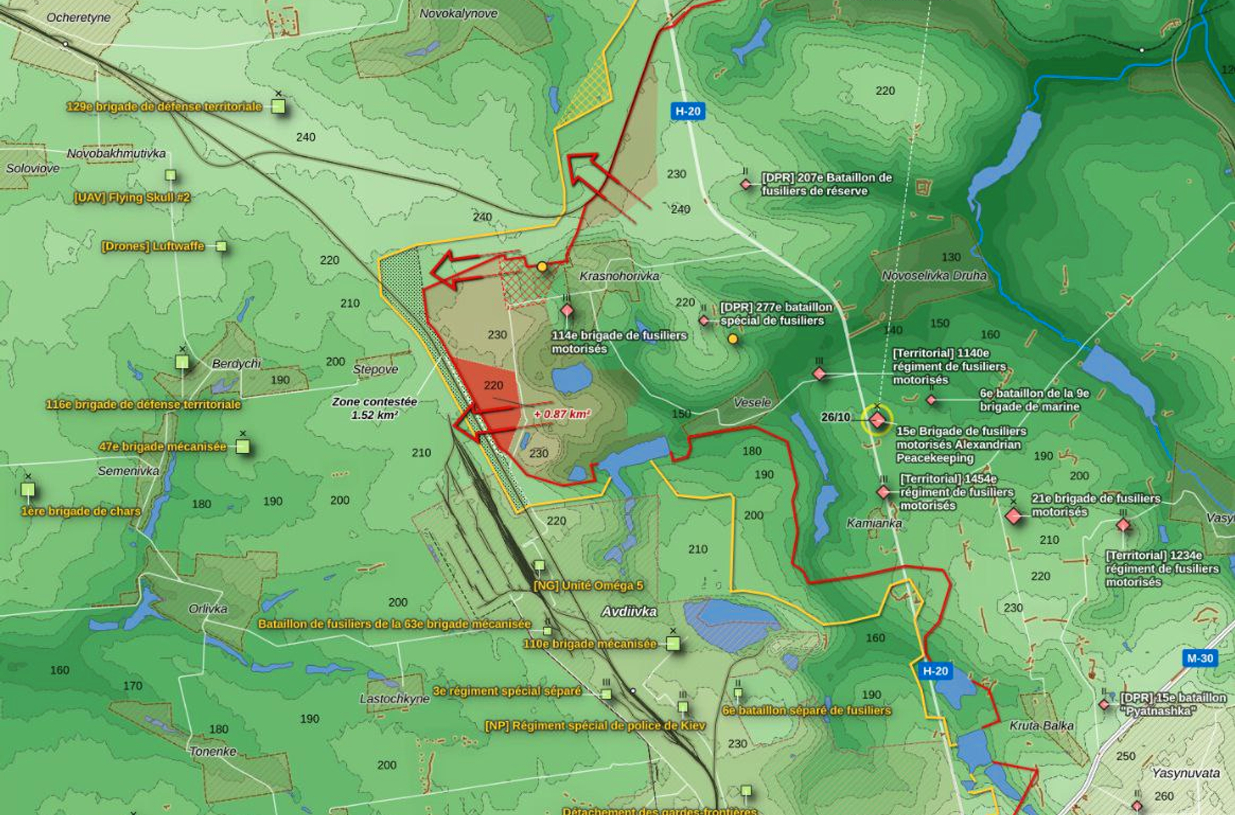 В районе Авдеевки ВС РФ отказались от сплошного наступления со всех сторон и теперь чередуют наступательные действия то с северного, то с южного фаса. По мнению украинского военного обозревателя Константина Машовца, это может объясняться как нехваткой материально-технических ресурсов и невысоким качеством личного состава, так и попыткой дезорганизовать и запутать обороняющихся.