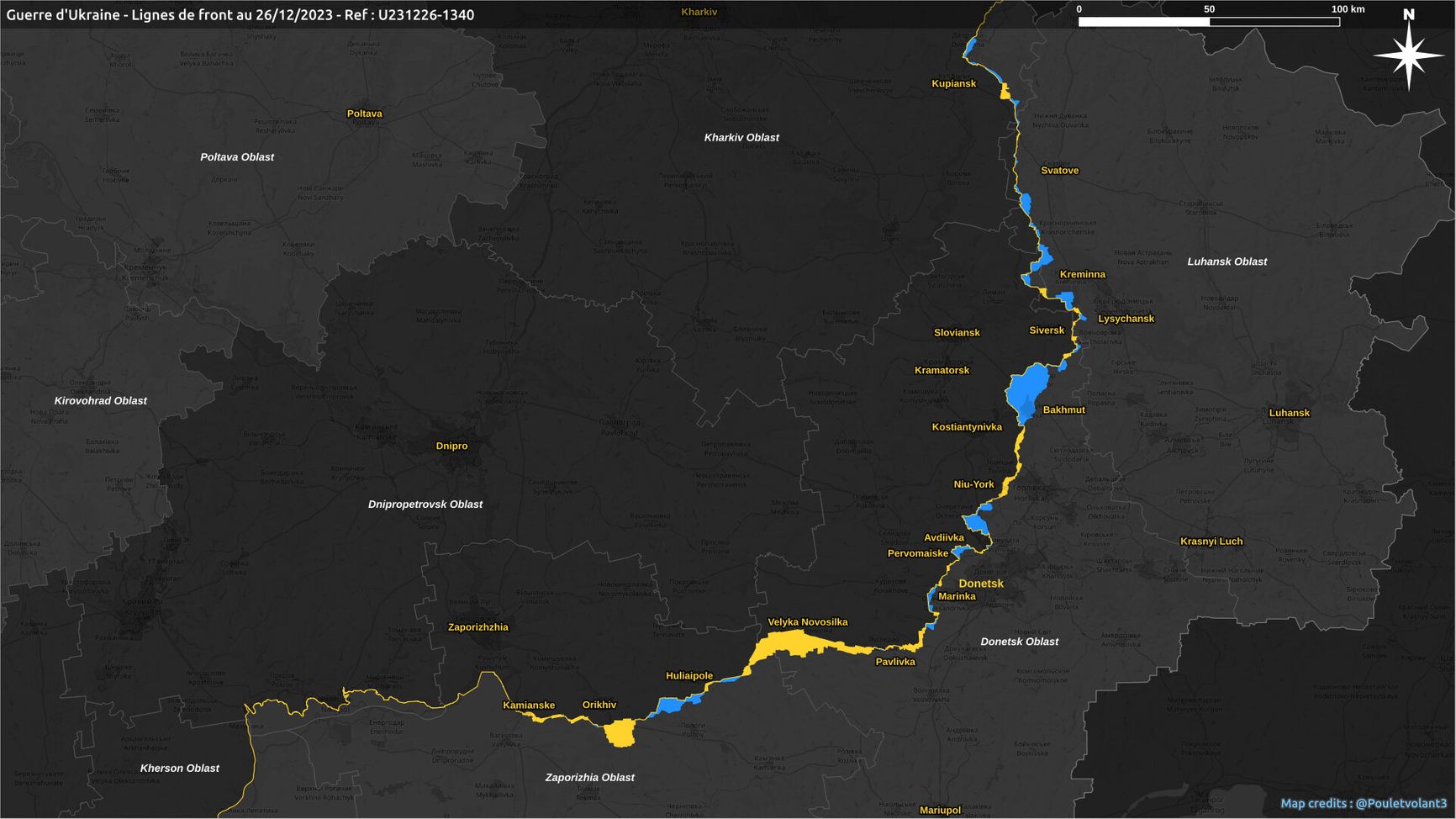 По данным DeepState, за 2023 год украинским военным удалось освободить 395 кв. км территории страны. За это же время россияне оккупировали 693 кв. км. Авторы проекта считают, что несмотря на преимущество, россияне не смогли организовать контрнаступлений, сравнимых с Харьковской и Херсонской операциями ВСУ в 2022 году, и не добились стратегических результатов.