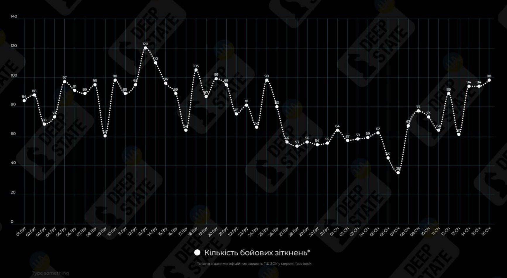 DeepState — украинский проект, поддерживающий регулярно обновляемую карту контроля территорий в зоне боевых действий в Украине и публикующий сводки о ситуации на фронте на основе открытых источников (OSINT) и информации от украинских военных.