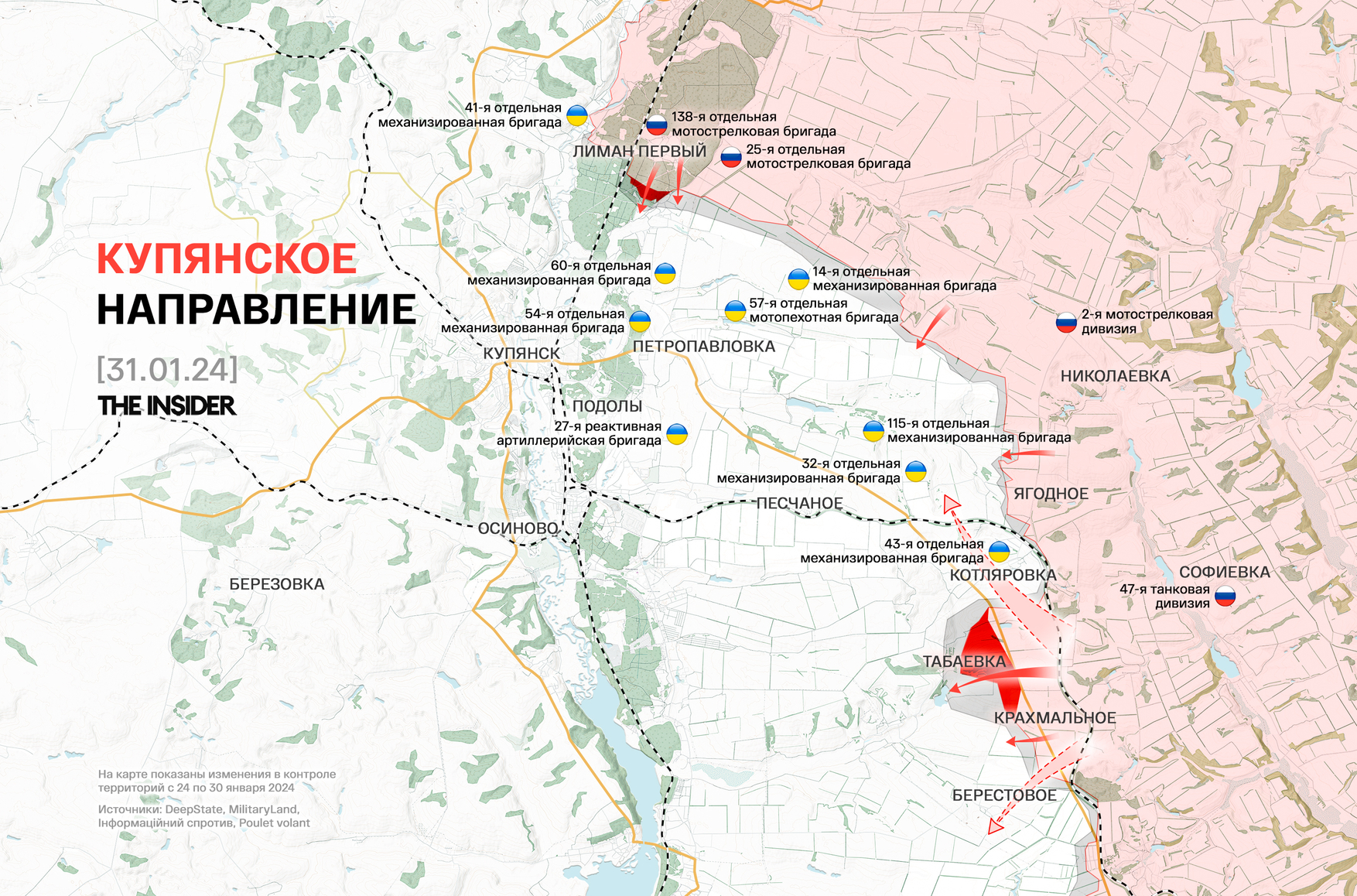 Украинский военный обозреватель Константин Машовец пишет, что на купянском направлении командование ВС РФ реализует замысел по выходу на левый берег реки Оскол. После того как ВСУ оставили села Крахмальное и Табаевка (точнее, то, что от них осталось), противнику необходимо обезопасить фланги, соответственно, непосредственной угрозы прорыва пока нет.