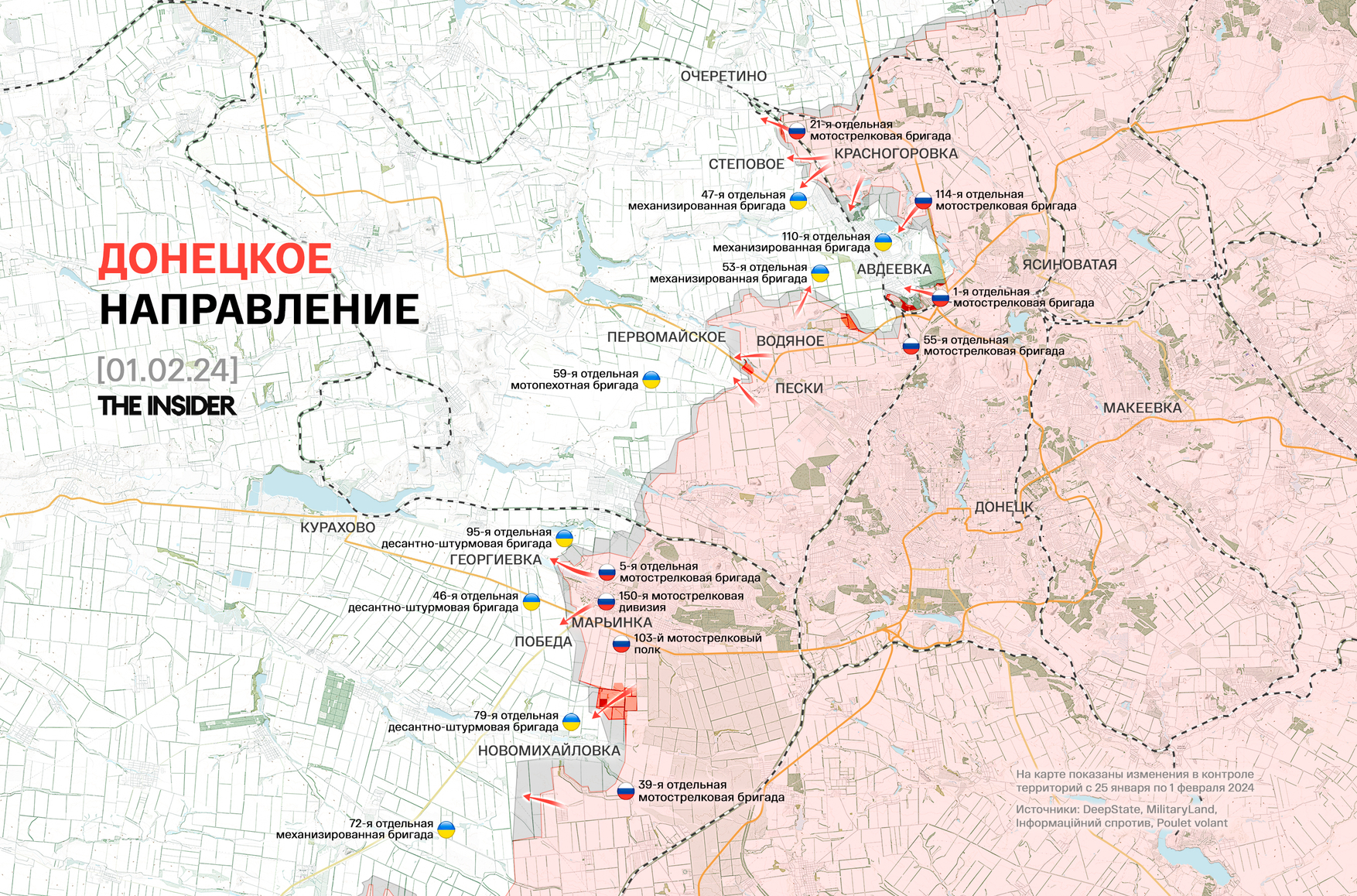 Также на графике отмечены попытки оттеснить ВСУ за реку Жеребец, которые продолжаются весь последний год, а также операция по окружению или захвату Авдеевки.