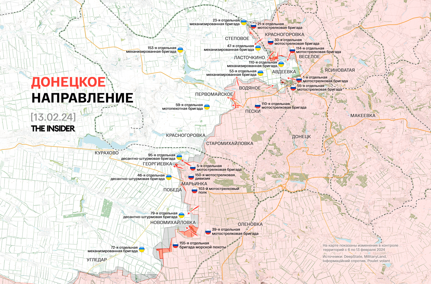 Украинские войска вернули контроль над некоторыми тактическими позициями примерно в трех километрах к востоку от села Ямполовка Краматорского района в Донецкой области. Как сообщается в сводке ISW, это подтверждают геолоцированные кадры от 11 февраля. ВСУ также незначительно продвинулись к юго-западу от Донецка и к западу от села Пятихатки на запорожском направлении.