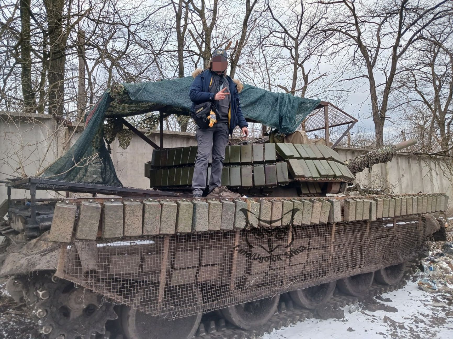 Z-канал «Уголок Ситха» демонстрирует российский танк, примечательный тем, что он практически полностью покрыт динамической защитой «Контакт-1». Бронированию подверглась в том числе кормовая часть башни, которая часто становится мишенью для FPV-дронов.
