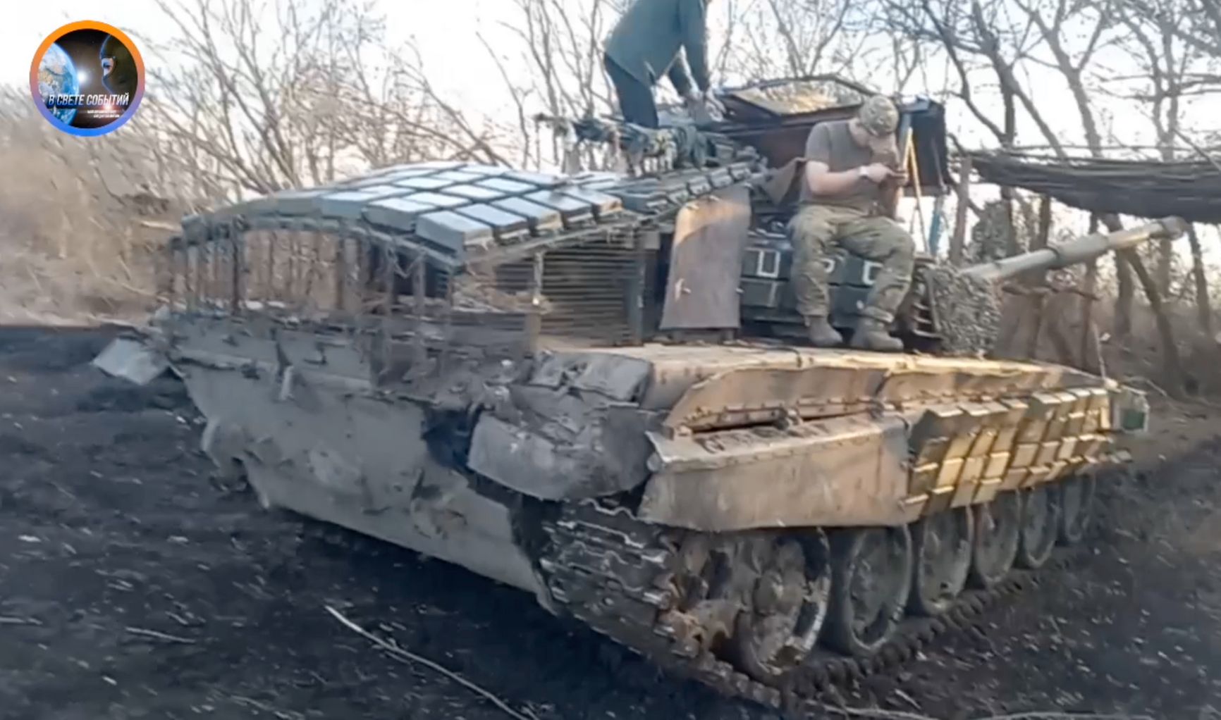 Появилось видео российского танка Т-72Б(1), оборудованного для стрельбы с закрытой огневой позиции. Его моторно-трансмиссионное отделение прикрывает «мангал» с установленными на нем элементами динамической защиты.