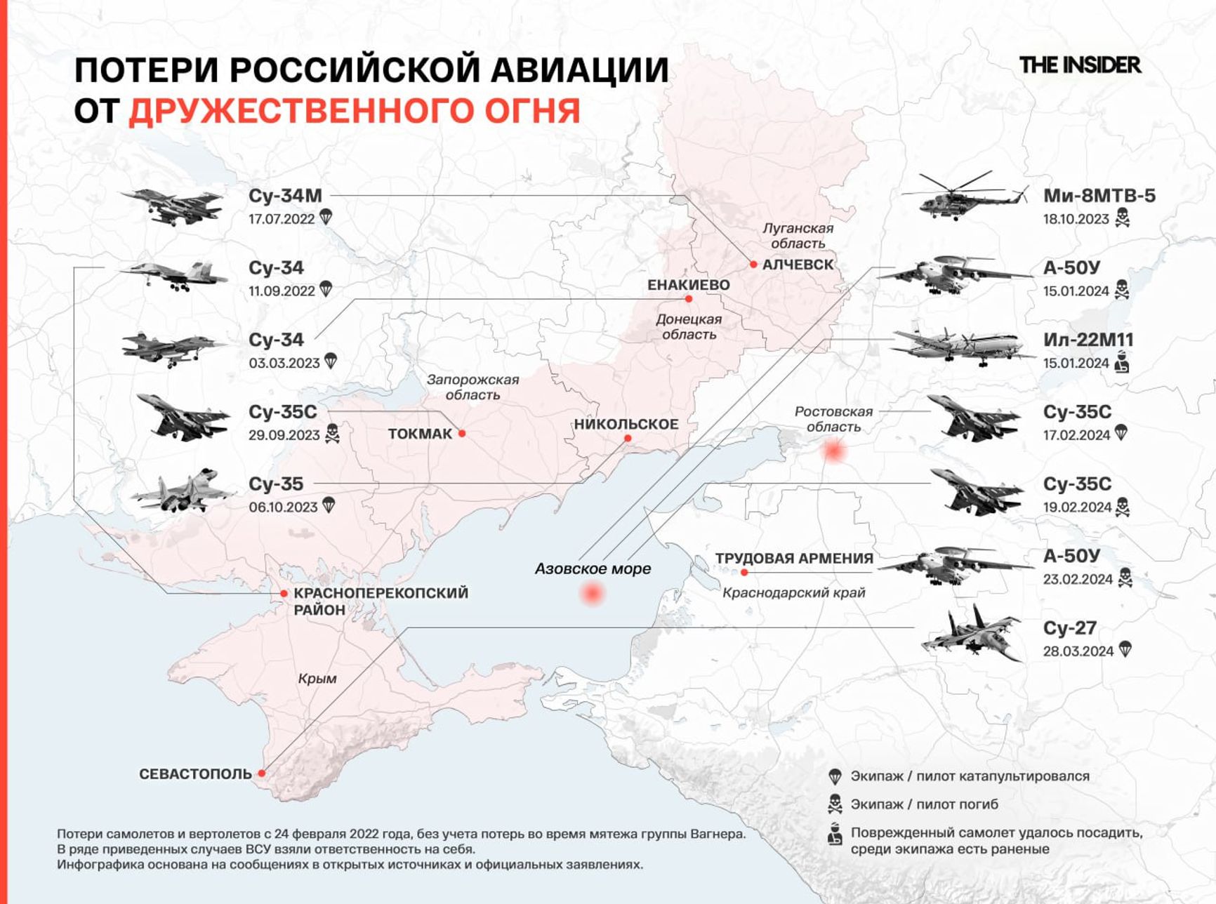 По подсчетам The Insider, за время войны от дружественного огня собственной ПВО могли пострадать как минимум 12 российских самолетов и вертолетов.