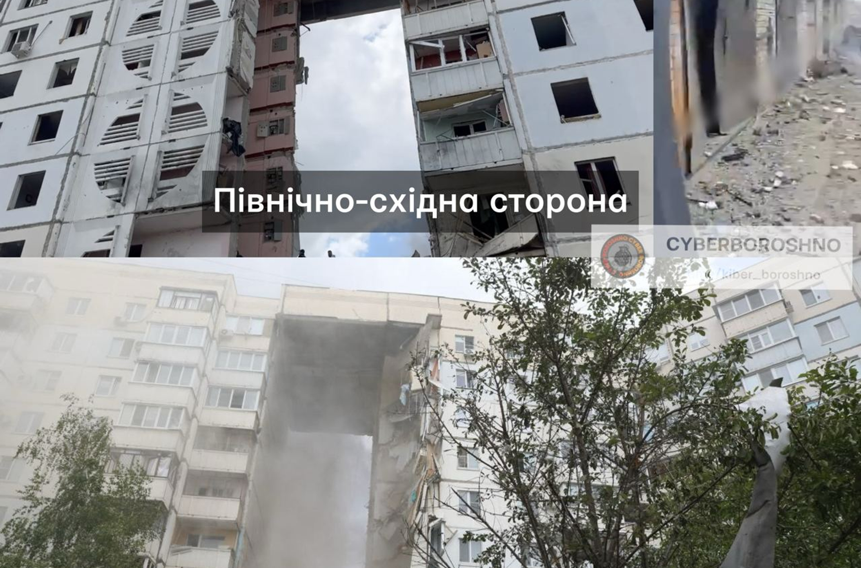 К тем же выводам приходит и украинский OSINT-проект «КiберБорошно». «Судя по повреждениям и окружающим зданиям, сам взрыв был с северо-восточной стороны дома. Окна выбиты, двери гаражей изогнуты в другую сторону. Тогда этот прилет был со стороны России. Если мы берем, как контраргумент, что на видео с камеры не видно ракеты и она прилетела из той части, что не видно, тогда ракета каким-то образом обошла все здания вокруг и прям в 0 этаж прилетела с северо-западной части дома и что? И это все равно россия», — пишут авторы канала.
