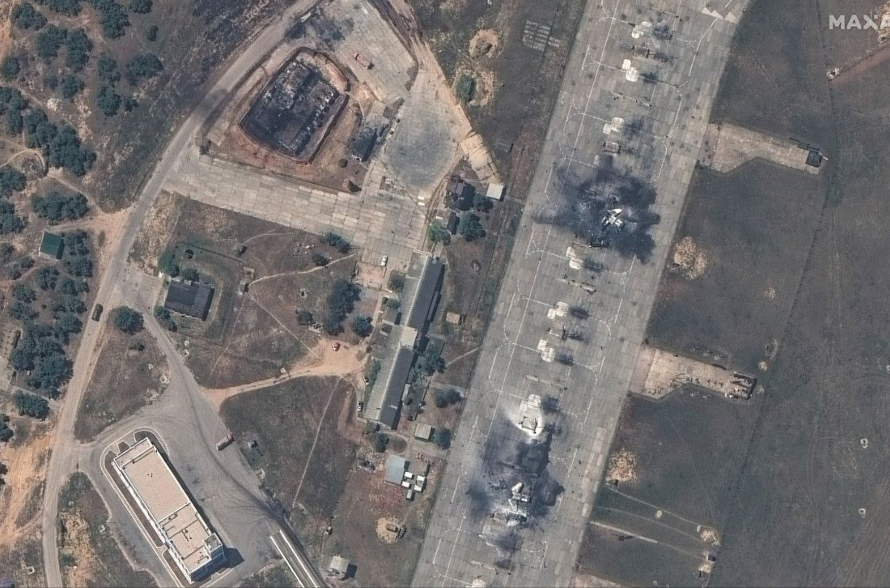 Расследователь New York Times Кристиан Триберт опубликовал спутниковые снимки военного аэродрома Бельбек в аннексированном Россией Крыму после украинской атаки ракетами ATACMS.