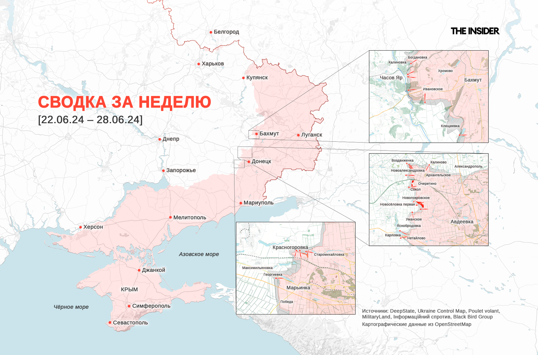 Предыдущая недельная сводка (с 15 по 21 июня 2024 года): Городские бои в Волчанске, российское наступление на Нью-Йорк, ВКС РФ получили ФАБ-3000 с УМПК. Что происходило на фронте на этой неделе