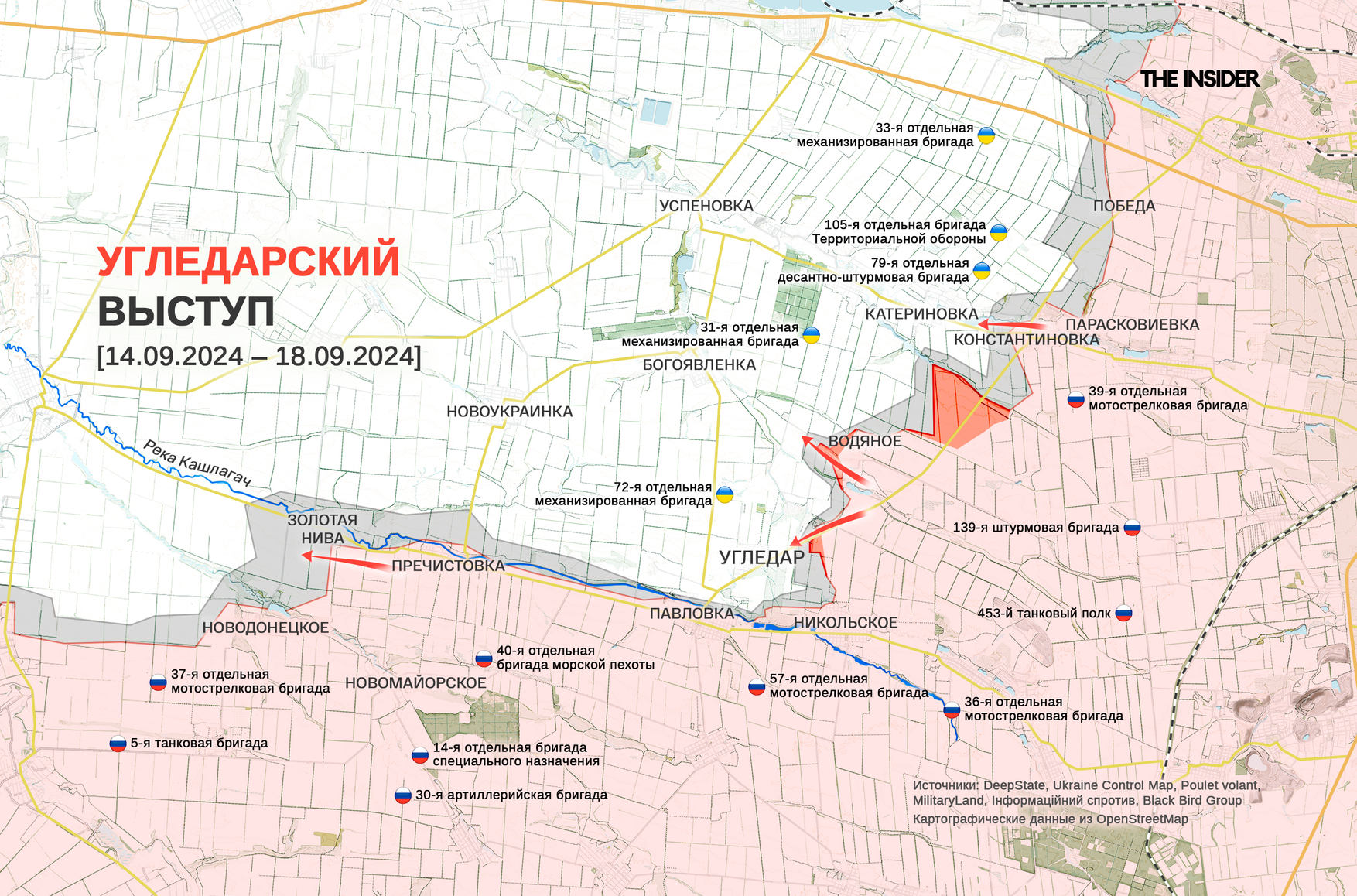 По информации Z-канала «Воин DV», связанного с российской группировкой войск «Восток», на Угледарском выступе ВС РФ полностью контролируют вентиляционный ствол шахты Южнодонбасская №1, продолжают бои за шахту Южнодонбасская №3, а также продвигаются к северу от Водяного. В то же время авторы канала констатируют, что темпы российского наступления здесь снизились из-за перегруппировки штурмовых подразделений после закрепления их на новых позициях.