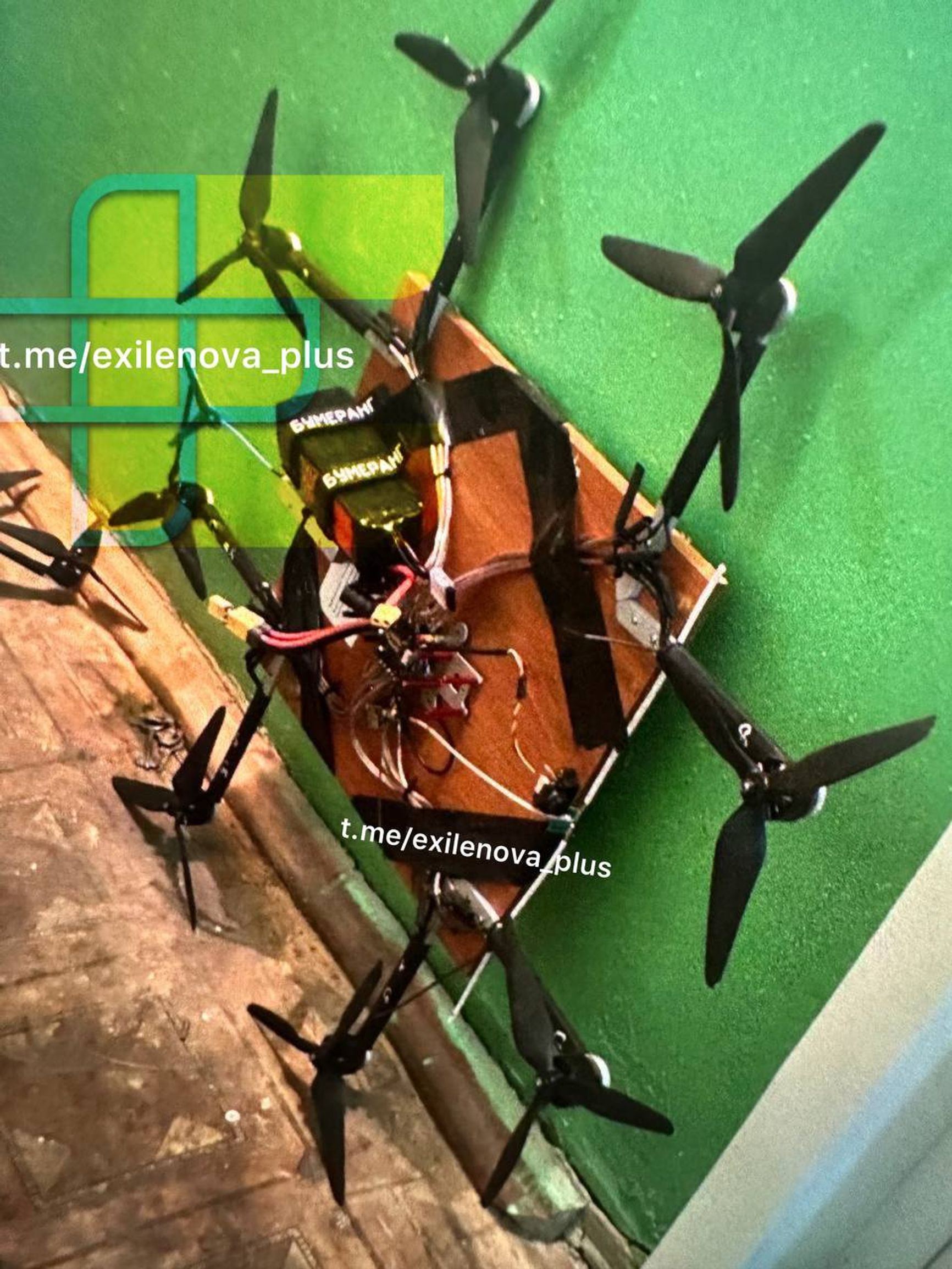 Украинский журналист Юрий Бутусов публикует фотографию российского мультикоптерного дрона, основа которого выполнена из дерева: