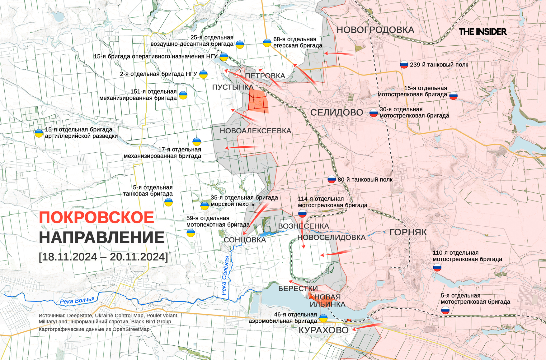 Другой «военкор» Юрий Котенок также рассказывает о боях «фактически в центральной части» Курахова. Он пишет, что российские военные сумели форсировать водохранилище и занять стратегически важный элеватор, а также рынок и квартал многоэтажек, а к югу от города им удалось выйти в тыл ВСУ, сделав фактически бессмысленным удержание рубежа обороны по реке Сухие Ялы.