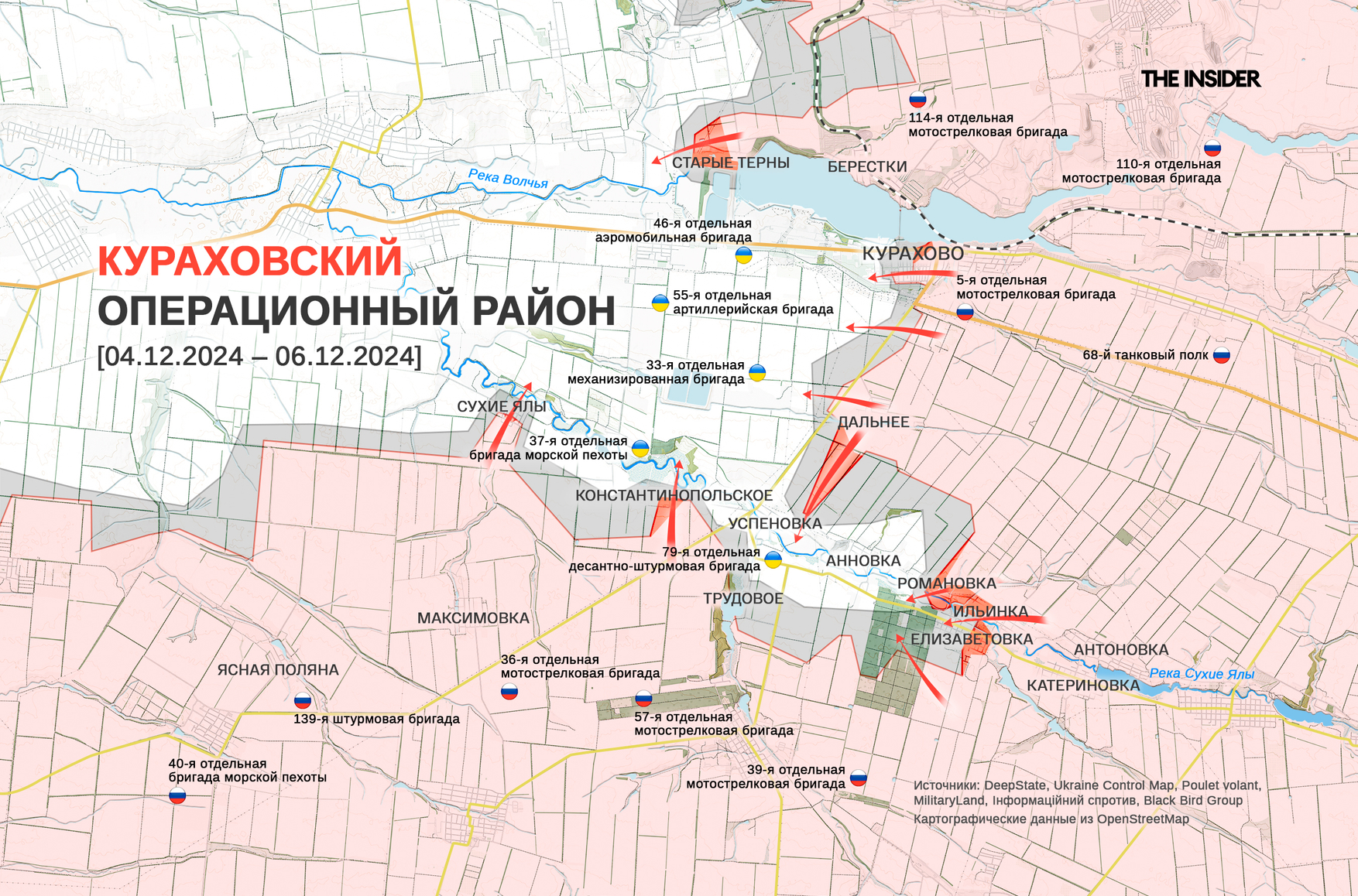 О главных событиях войны 5 декабря — в предыдущей сводке: ВСУ контратакуют севернее Великой Новосёлки на Времевском выступе, российские войска давят с флангов на Курахово. Что происходит на фронте