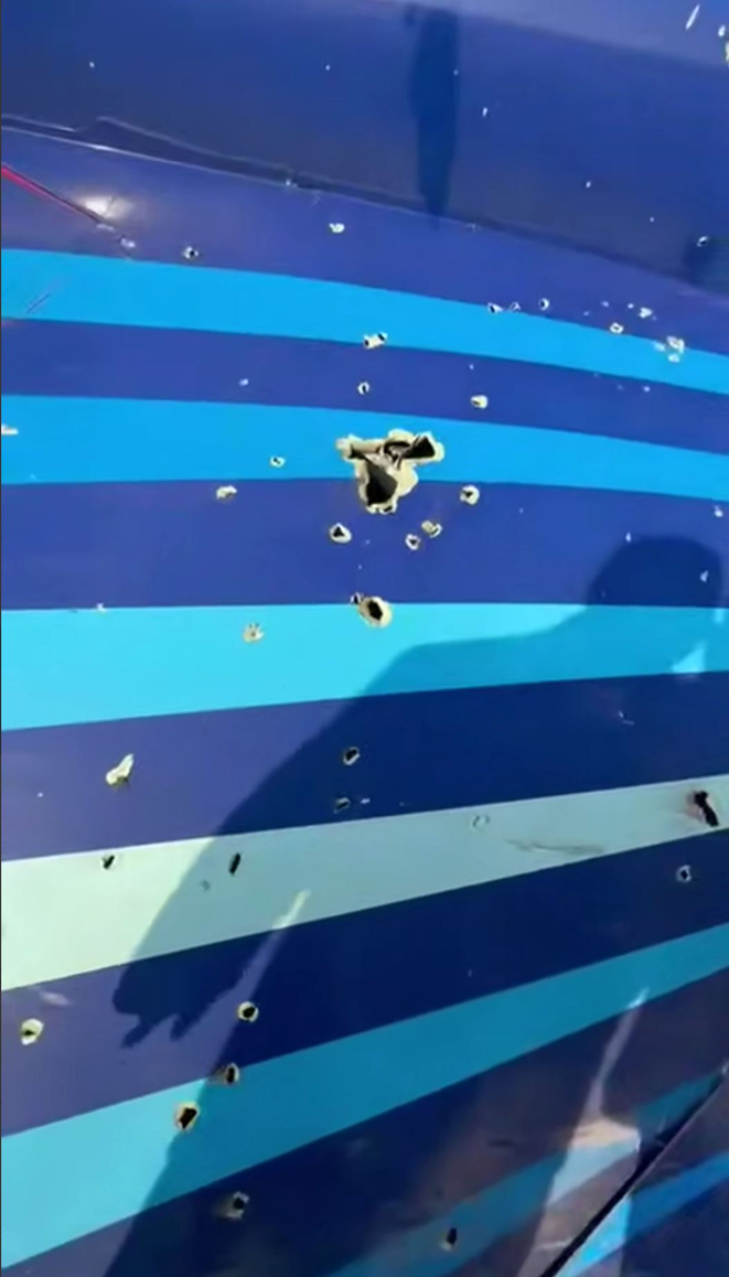 Telegram-канал «Рыбарь», комментируя видео с места крушения самолета, пишет, что отметины на фюзеляже похожи «следы поражающих элементов зенитной ракеты»: