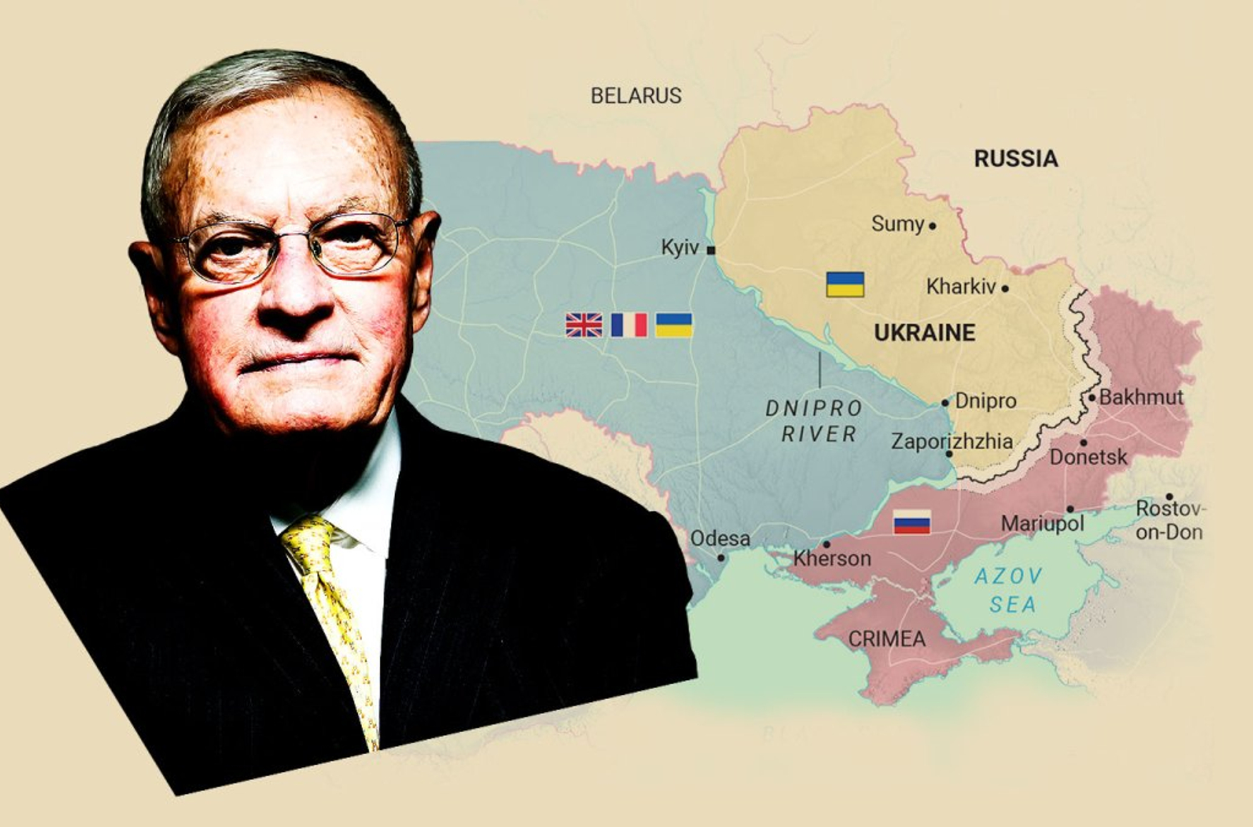 (На карте Херсон ошибочно расположен на левом берегу Днепра под оккупацией России. В действительности он на правом берегу и под контролем Украины, это ошибка картографа The Times)