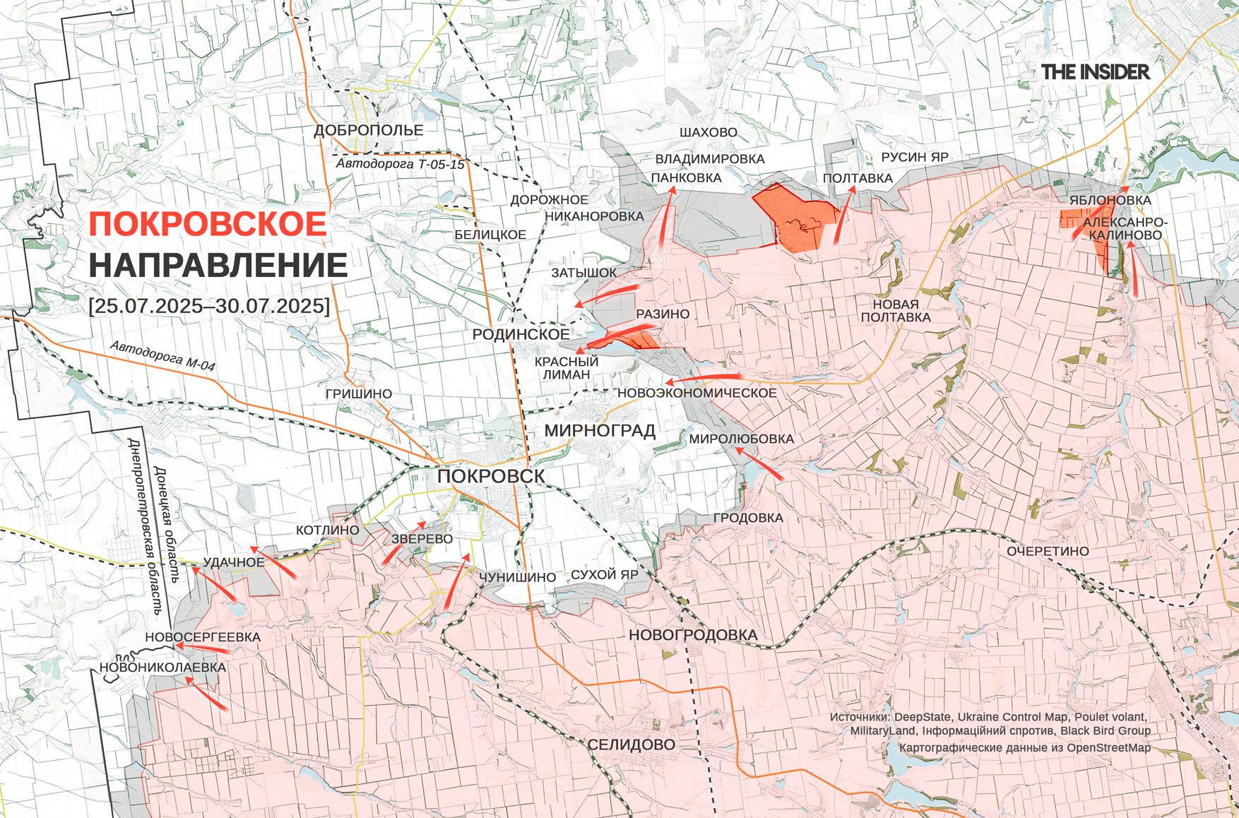 На покровском направлении российские войска приближаются к Родинскому к северу от Мирнограда (до 2016 года — Димитров).