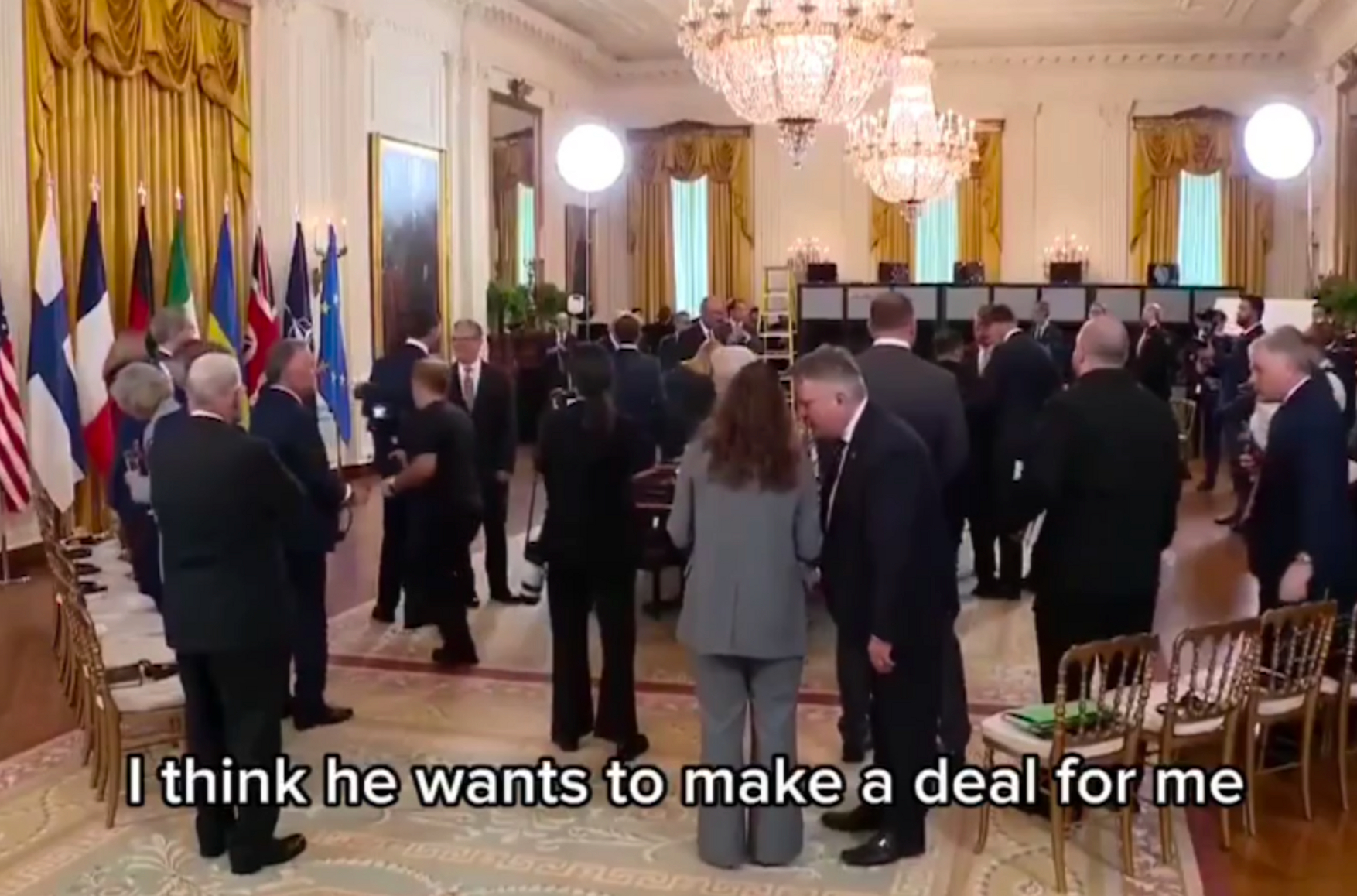 Трамп прошептал президенту Франции Эммануэлю Макрону, что Путин «хочет заключить сделку ради него». Эти слова записал микрофон после публичных заявлений Трампа, Зеленского и лидеров ЕС, пишет CNN.