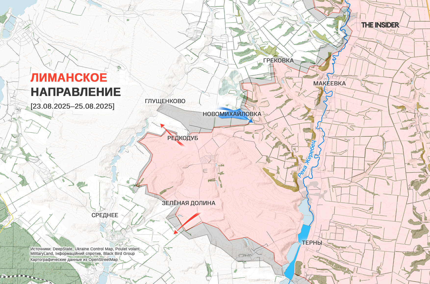 Константин Машовец рассказывает (1, 2) об успехах СОУ в районе «прорыва» ВС РФ под Добропольем: им удалось выбить противника с позиций в районе трассы Доброполье — Краматорск, а также зачистить Золотой Колодезь и большую часть Кучерова Яра. Украинские военные отбили Заповедное (до 2024 года — Никаноровка) и Новое Шахово (до 2016 года — Розы Люксембург) и отбросили россиян от трассы Доброполье — Покровск в районе Белицкого. В результате возникла угроза окружения всех российских сил севернее рубежа Никаноровка — Маяк, однако ВС РФ удалось этого избежать благодаря вводу в бой дополнительных резервов. Тем не менее, считает Машовец, российское командование на этом направлении вернулось к первоначальным планам блокирования линий снабжения Покровско-Мирноградской агломерации, для чего штурмует Родинское и Красный Лиман.
