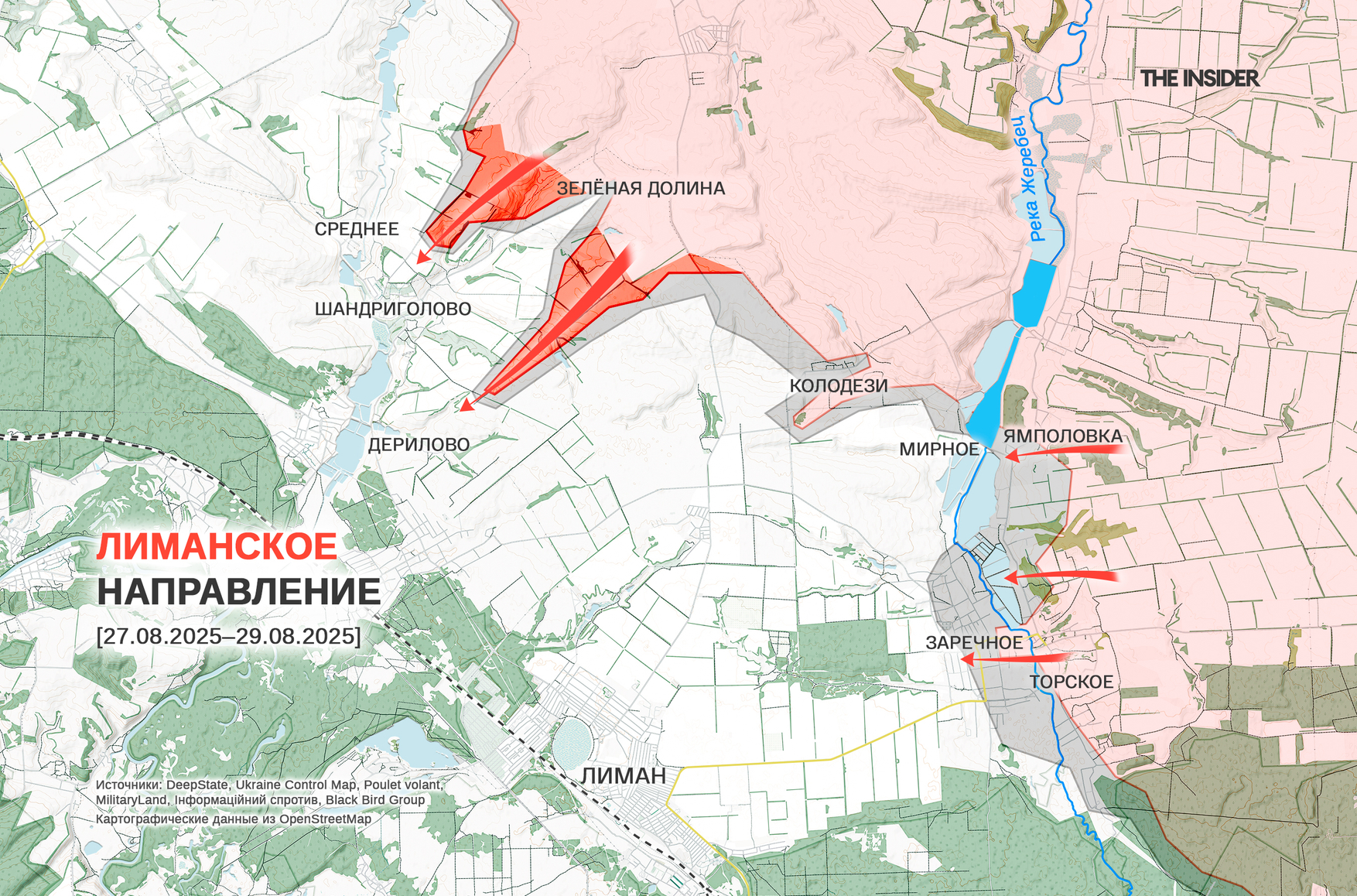 Z-канал «Военный Осведомитель» описывает украинские контратаки на нескольких участках российского плацдарма на правом берегу реки Жеребец как попытку не допустить прорыва ВС РФ за реку Нитриус, что открыло бы путь к Осколу и Святогорску.