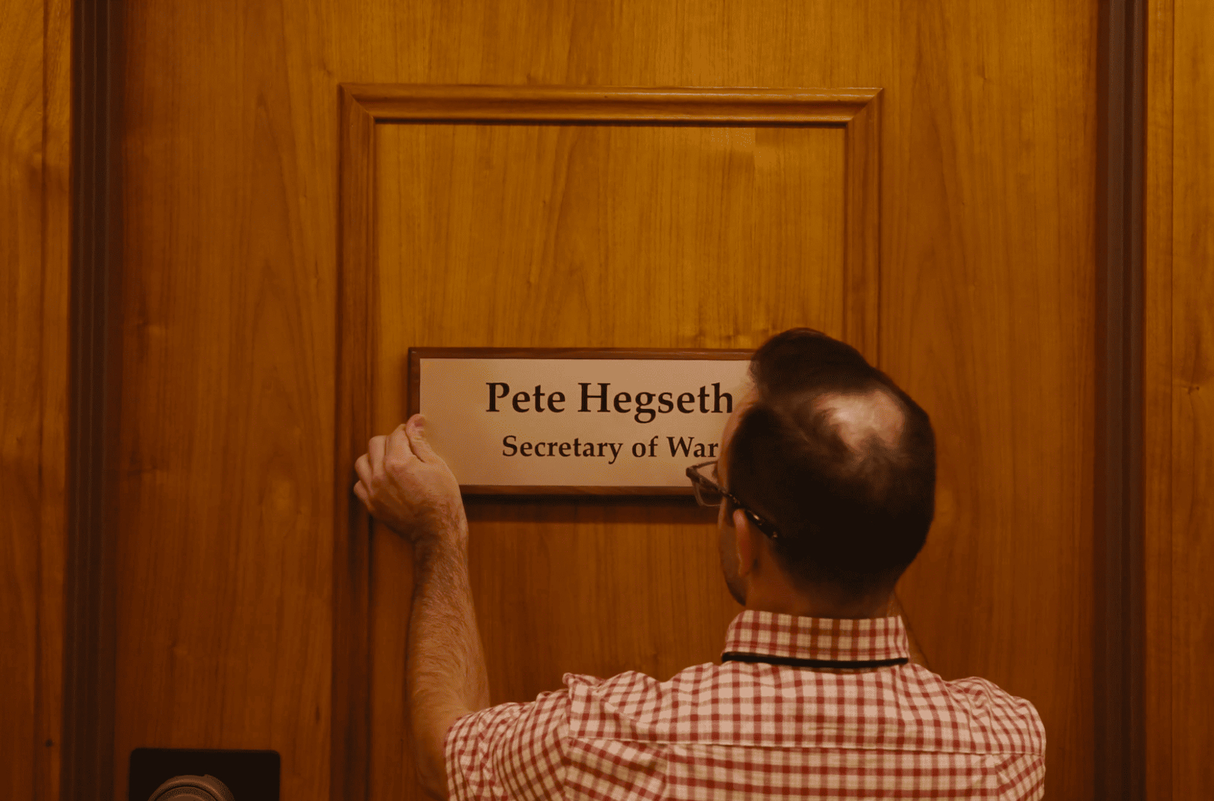 Глава ведомства Пит Хегсет уже переименовал свой официальный аккаунт в Twitter (X). Теперь его должность называется «военный министр». Он также опубликовал видео того, как на его двери меняют табличку.