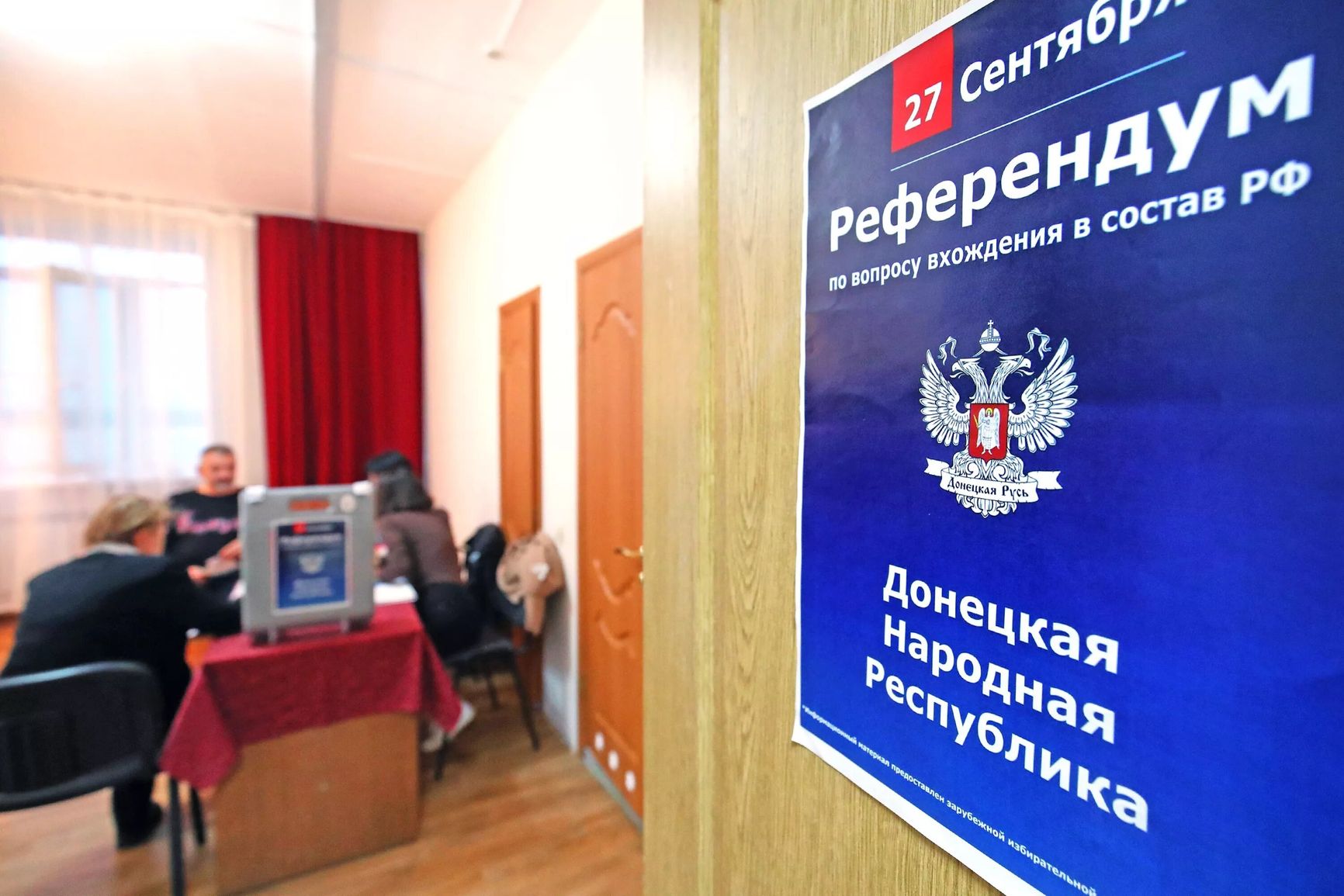 Заявление стран G7: «„Большая семерка“ решительно осуждает и безоговорочно отвергает незаконную попытку аннексии Россией Донецкой, Луганской, Запорожской и Херсонской областей Украины в дополнение к Автономной Республике Крым и городу Севастополю. Мы торжественно подтверждаем, что никогда не признаем эту незаконную аннексию или фиктивные референдумы, которые Россия использует для её оправдания».