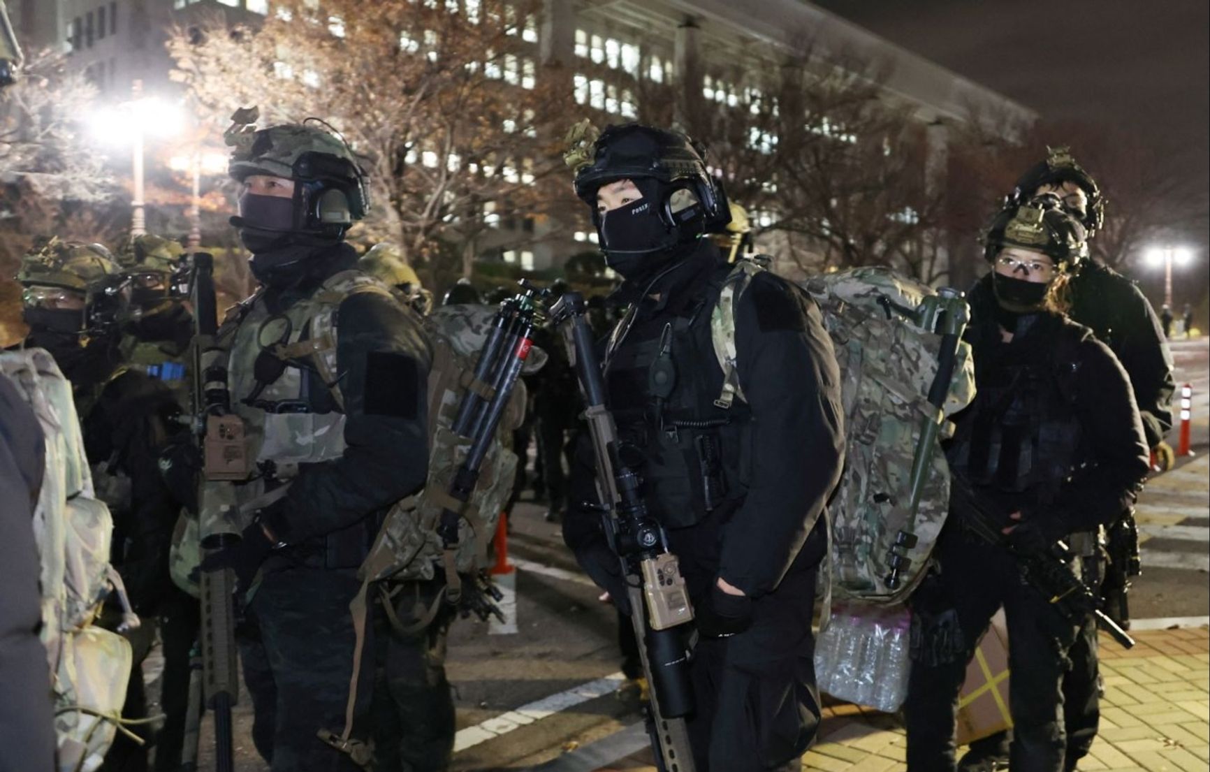 Первый же пункт этого указа полностью нарушал действующее законодательство — ведь чрезвычайное положение нельзя использовать для прекращения деятельности парламента. Однако именно к этому Юн и стремился. По указанию президента здание было оцеплено полицией, а в направлении парламента вылетели вертолеты со спецназом.