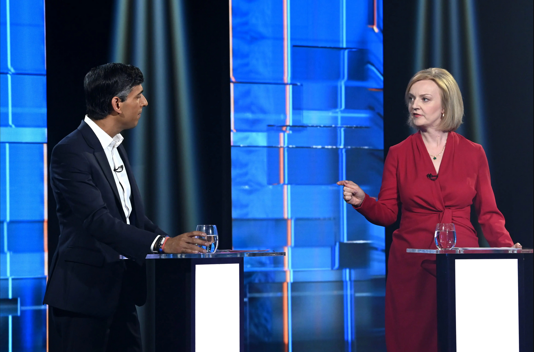 Лиз Трасс наоборот, ратует за снижение налогов. По ее мнению, только так можно стимулировать рост экономики. И Сунак, и Трасс настаивают на том, что их подход к проблеме лучше всего отвечает философии консервативной партии, хотя спор, получивший название «Blue on Blue» (Синее на синем — отсыл к цвету, которым обозначается консервативная партия), идет как раз между двумя течениями экономической мысли внутри одной партии и не имеет отношения к межпартийным разногласиям. Трасс предлагает немедленно отменить повышение налога на национальное страхование (National Insurance Tax), введенное Риши Сунаком, когда он был главой Минфина в прошлом правительстве, отменить корпоративный налог, предложенный Сунаком, и временно приостановить отчисления в фонд «зеленой энергии». Её план обойдется бюджету в 30 млрд фунтов стерлингов, но Трасс утверждает, что это не приведет к дальнейшему скачку инфляции, предотвратит рецессию и в конце концов пополнит бюджет за счет доходов от роста экономики. Сунак называет ее план «сказкой», а его сторонники говорят, что Трасс «ушла в отпуск от реальности». Риши Сунак не имеет ничего против сокращения налогов, но только после того, как удастся справиться с растущей инфляцией. Этот подход, по его словам, носит более ответственный характер, чем сокращение налогов за счет государственного долга.