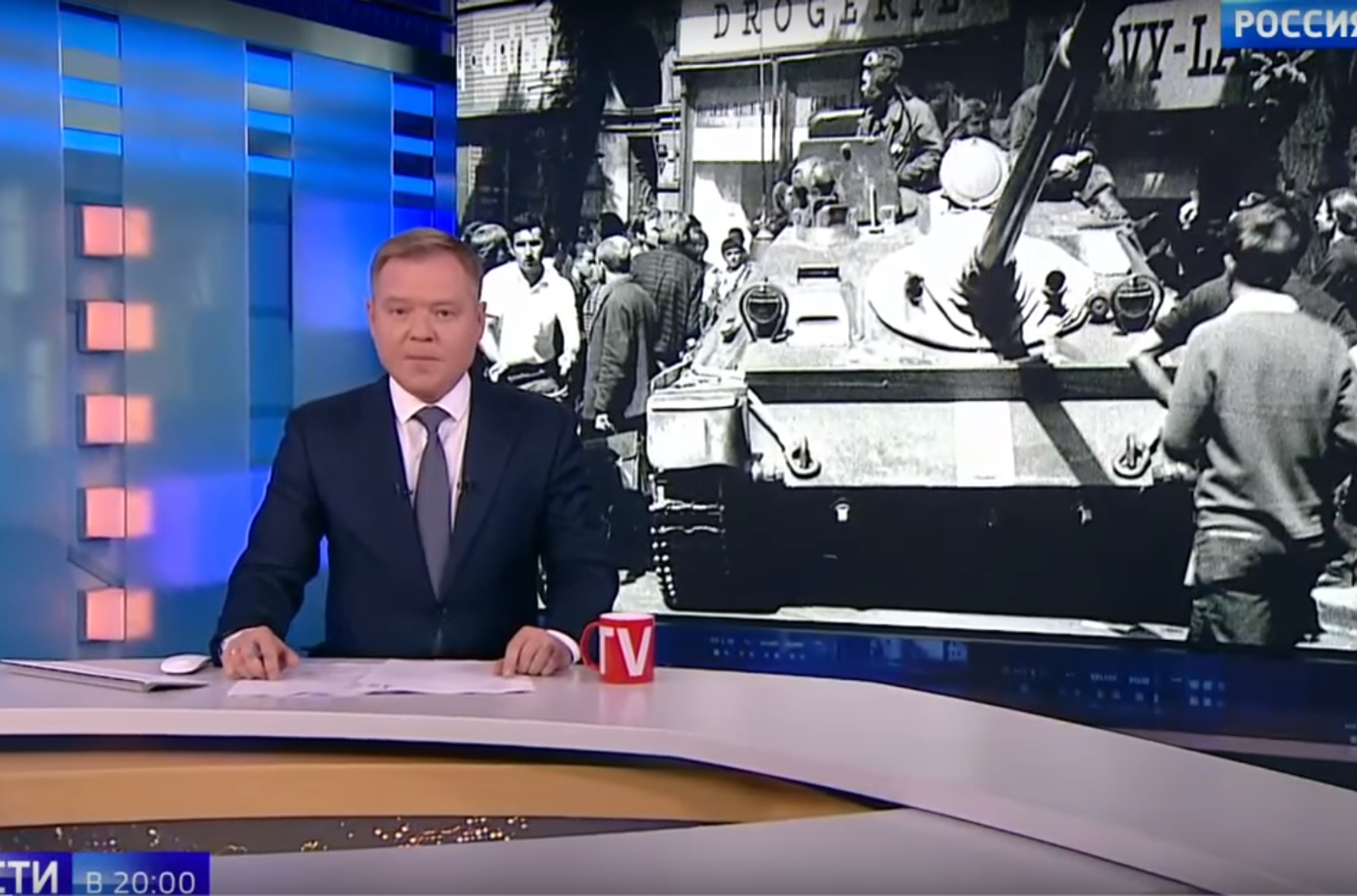 Можно переставить грубо, как это делают авторы маргинальных изданий, можно более тонко, как это сделал шеф европейского бюро «России». Но результат направлен на одно: чехи «сами во всем виноваты». Вот Дубчек, он потерял контроль, вот «диссиденты», они действовали по указке ЦРУ, вот чехи в целом, они требовали слишком больших перемен - надо было медленнее вести политический процесс реформ (об этом в сюжет вставлено короткое интервью с чешской журналистской Прохазковой), вот европейская атмосфера 1968 года — она тоже повлияла негативно. Если собирая этот паззл передвинуть на дальнее место процесс принятия решения в Москве, реформистские идеи, которые обсуждались чешской компартией, такое же военное вмешательство в Будапеште в 1956 году, а главное — если убрать вообще с горизонта саму историческую перспективу — то есть «бархатную революцию», то получится примерно та картина, которую сегодня предлагает Кремль и его медиа: вот вам трагический эпизод истории ХХ века, чехи сами несут за него ответственность, но не хотят признавать этого, и, больше того, они «глумятся над памятью»: посмотрите, они покрасили танк-освободитель в розовый цвет! Их отношение к истории — постмодернистское, а наше — скорбное, героическое, и мы сожалеем, что братский народ так заблуждается.