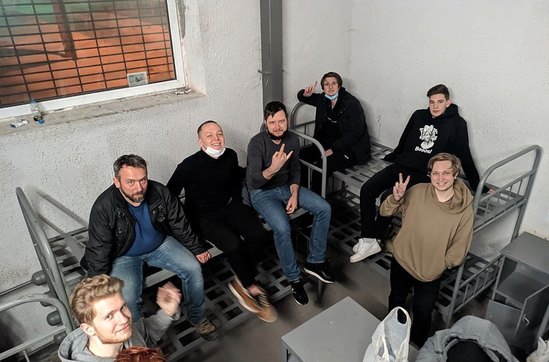 Дальше — прогулка, выводят по сорок человек в огромную клетку под окнами 4-этажного корпуса, это глоток воздуха: встречаются люди из твоего автозака, знакомство с другими автозаками и другими ОВД. Кому-то по дороге удалось позвонить и сообщить о себе, кому-то нет. Один мужик с бородой грустно говорит: ребята, посмотрите друг на друга и расскажите всем, когда разъедемся, — где тут экстремисты? Где боевики? Мы же все нормальные люди, с семьями, с работой… Только с яйцами.