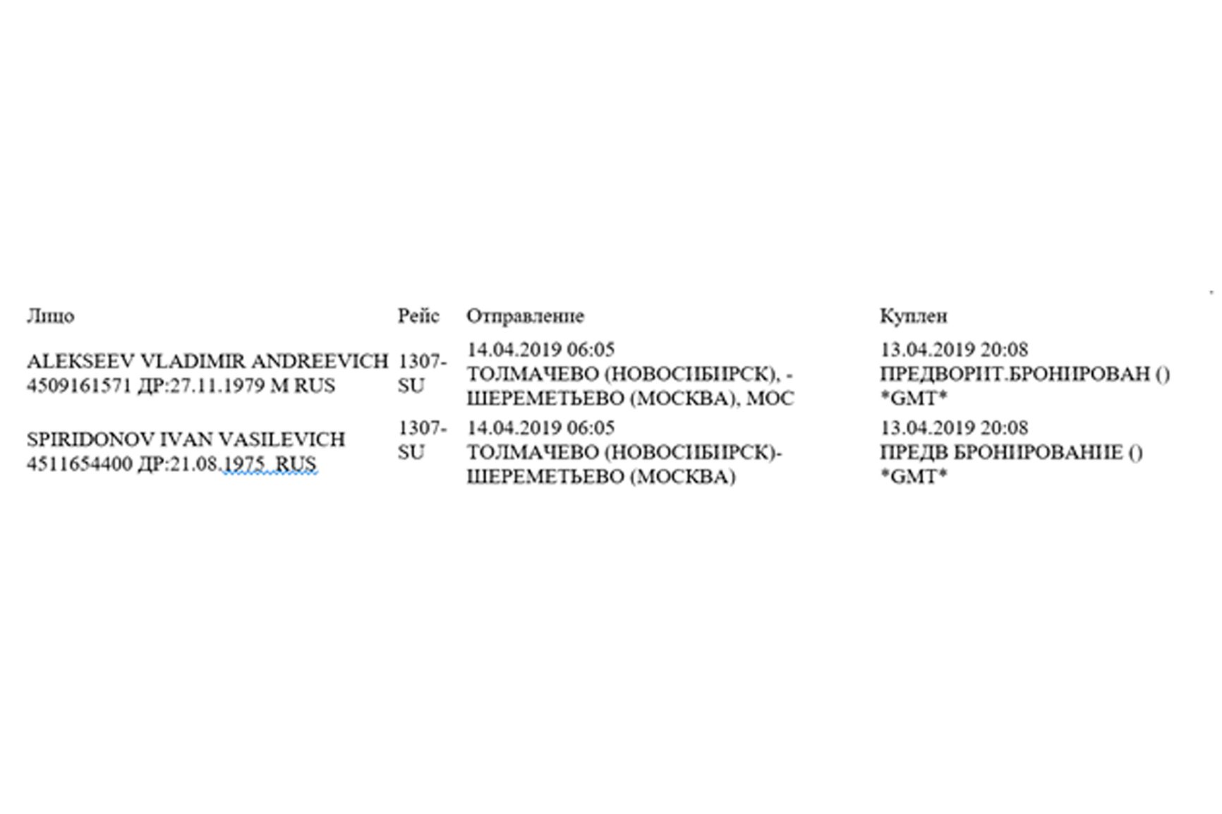 Итак, 13 апреля в 9 утра Дмитрий Быков и Екатерина Кевхишвили приземлились в Новосибирске, после чего заселились в отель Domina на улице Ленина (общего балкона там, впрочем, не было). К тому моменту убийцы уже были в городе — Паняев из Второй службы и Иван Осипов из «Лаборатории» прилетели в Новосибирск накануне вечером (под именами Владимир Алексеев и Иван Спиридонов, соответственно). И если Паняев мог быть тем, кто, по определению Путина, «просто присматривает», то Осипов — человек весьма конкретного профиля. Он не только сам работает в НИИ-2 ФСБ, но и постоянно созванивается сотрудниками центра «Сигнал» (где, как было показано в предыдущих расследованиях, работают с нервно-паралитическими веществами). Он также значится в регистрационных базах как получатель льгот (это может свидетельствовать о военных заслугах), а в приложениях по обмену контактными данными фигурирует как врач.