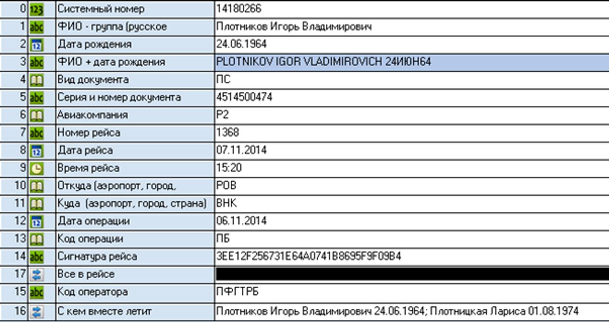 Паспорт прикрытия обнаружился и у Плотницкого, причем из-за той же ошибки, что и у Гиркина: он летал по нему вместе с женой Ларисой Плотницкой (которая, как сообщается, скончалась в 2020 году).