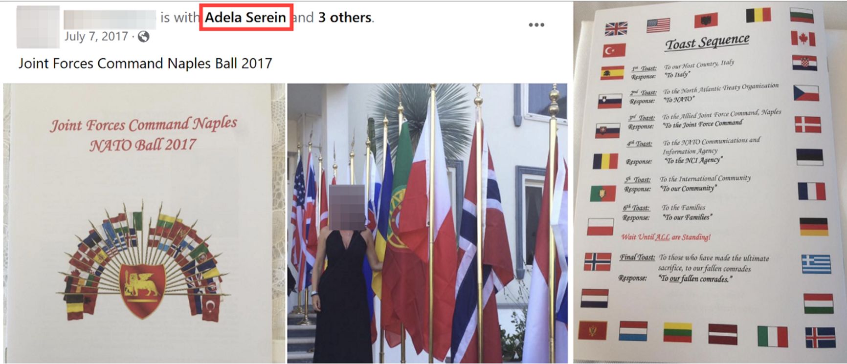 Трое опрошенных нами знакомых «Марии Аделы», связанных с НАТО, рассказали, что как член Lion’s Club она общалась со многими сотрудниками НАТО, подружилась с рядом офицеров и часто общалась с ними в социальных сетях, причем некоторые из этих связей носили явно романтический характер.
