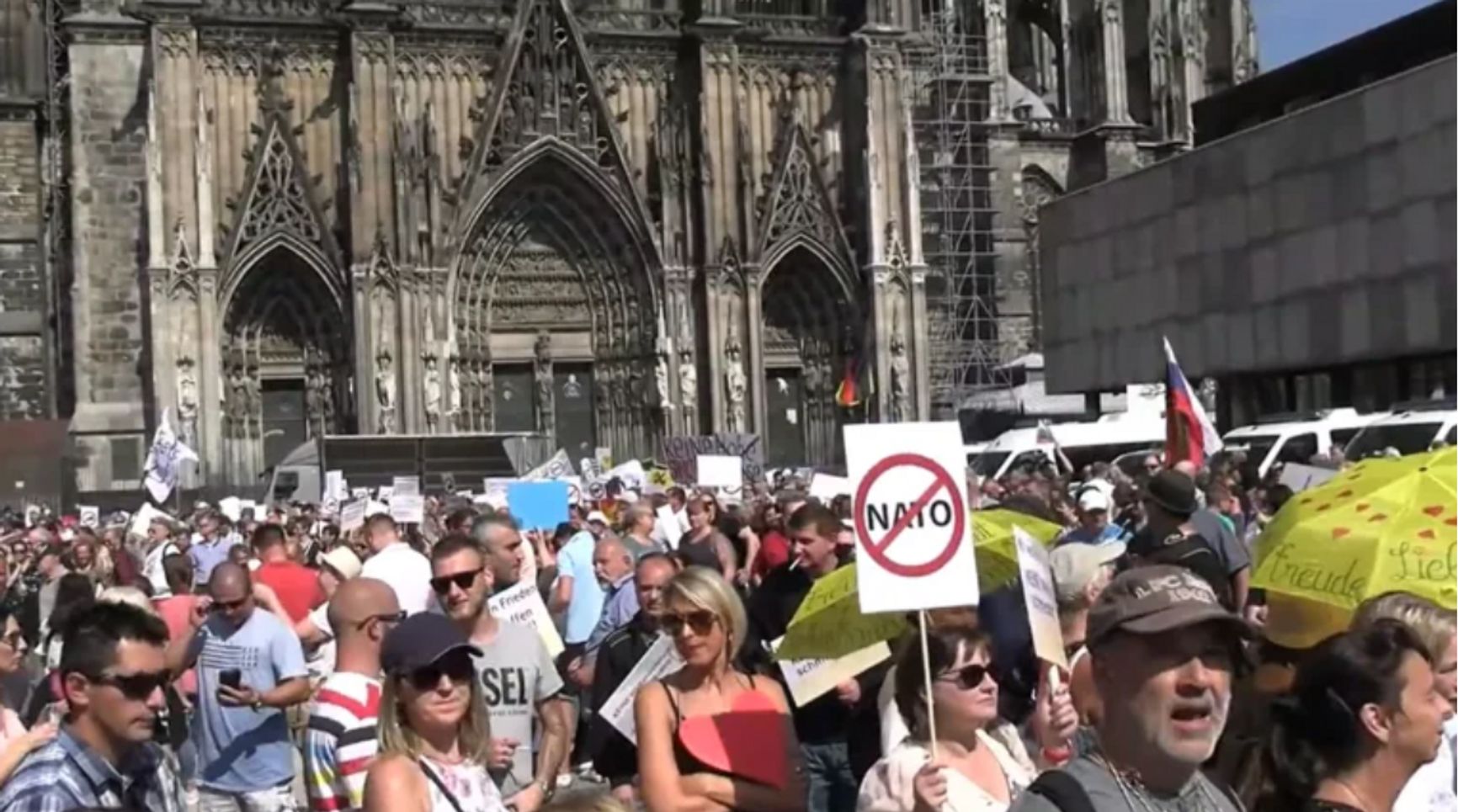 Около двух тысяч митингующих собрались на центральной площади Кёльна в воскресенье, 4 сентября. Люди в футболках с надписью «Россия» и с российскими флагами стояли у передвижной сцены напротив Кёльнского собора. Многие держали плакаты с призывом отменить санкции и запустить «Северный поток 2», а также остановить поставки оружия Киеву и наладить отношения с Москвой. Там же на площади был организован сбор средств для поддержки сепаратистов из «республик Донбасса», хотя так называемые ЛНР и ДНР еще в 2014 году признаны генеральной прокуратурой Германии как террористические организации.
