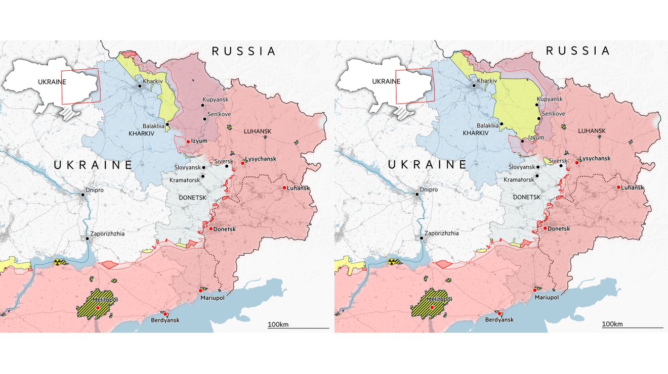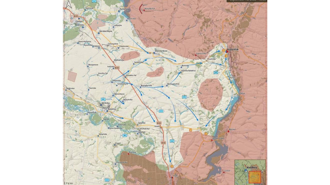 По оценкам независимых наблюдателей, командование ВС РФ, вероятно, приняло решение вывести войска со всех ранее занятых территории Украины на Харьковском операционном направлении западнее реки Оскол.