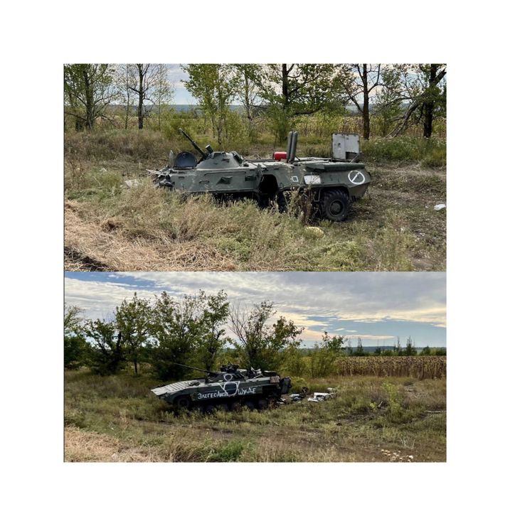 Появляется все больше видеозаписей с уничтоженной техникой ВС РФ на Харьковском направлении. В Минобороны РФ спешное отступление российский войск назвали «перегруппировкой» и «свертыванием и переброской изюмско-балаклейской группировки войск на территорию ДНР».