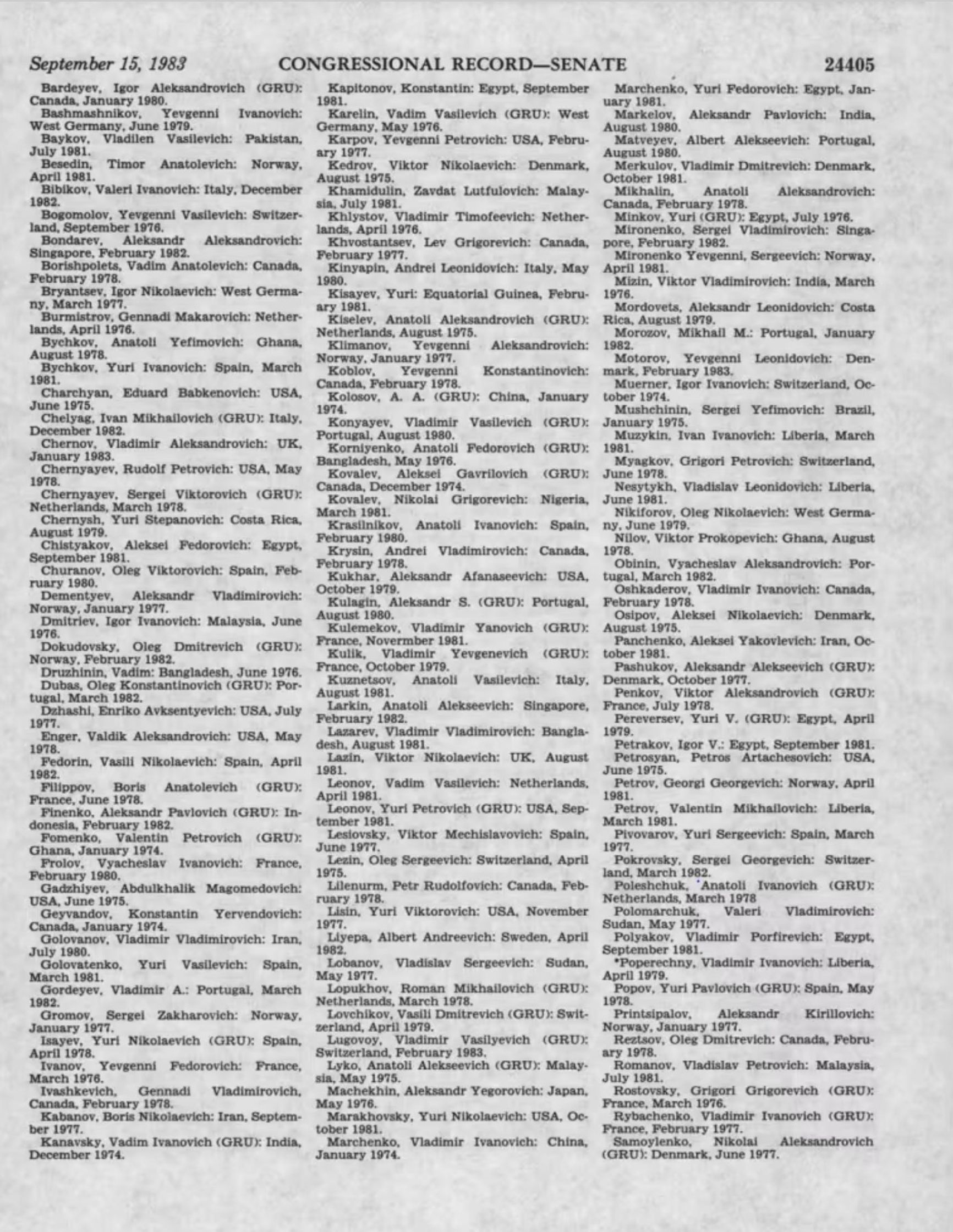 Кулемеков имел за плечами и опыт шпионажа в Европе. Во время слушаний в Сенате в 1983 году один из сенаторов попросил представить ему список всех советских дипломатов, которые за период с 1974 по 1983 год высылались за шпионаж из всех стран мира. В списке есть и имя Кулемекова.