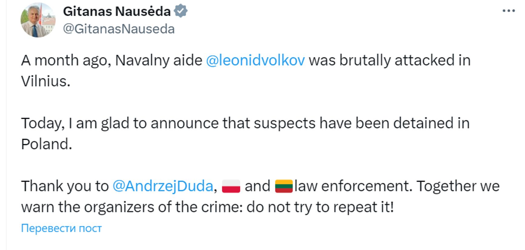 Изучая связи Дашковского, польские следователи наткнулись на интересную информацию: куратор Дашковского (гражданин Беларуси, также арестован) был связан с двумя другими польскими бандитами, которые приехали в Литву как раз в то время, когда Леонид Волков, экс-председатель Фонда борьбы с коррупцией, подвергся нападению, выходя из машины в своем загородном доме в Вильнюсе: нападавший нанес ему множество ударов молотком. Волков получил серьезные травмы лица и ног и был госпитализирован. Польские следователи связались с литовскими коллегами, и нападавший на Волкова также был арестован.
